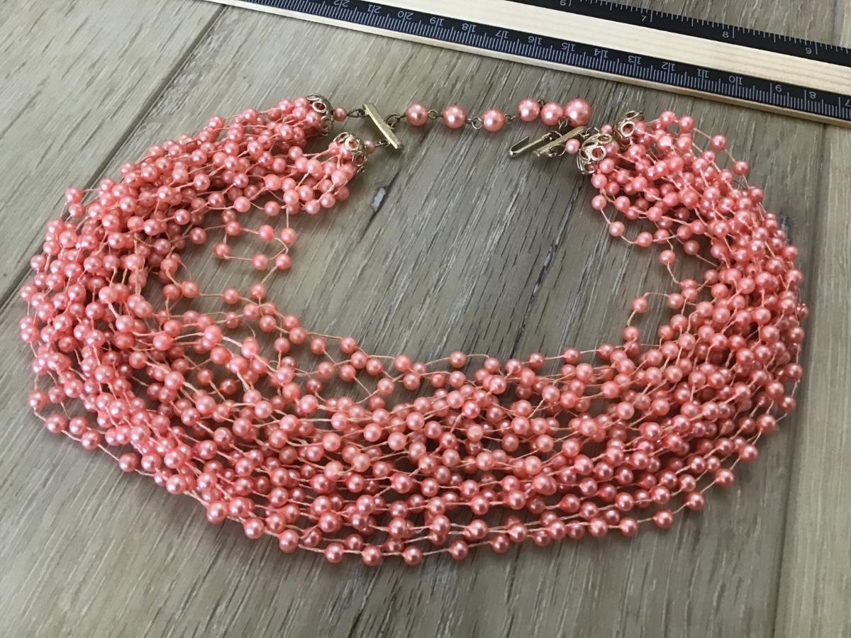 Vintage Petite Peach Beaded Hong Kong Necklace