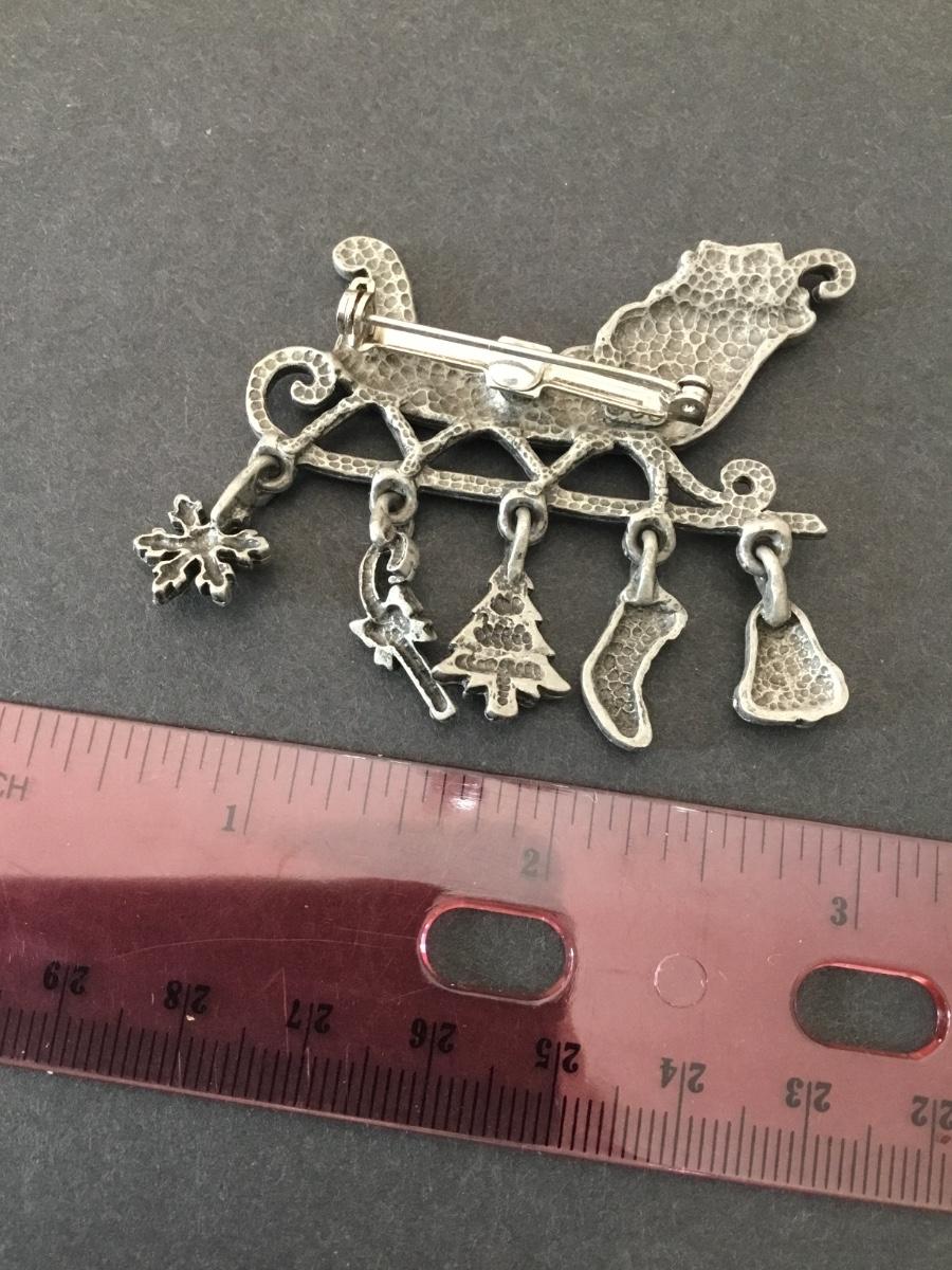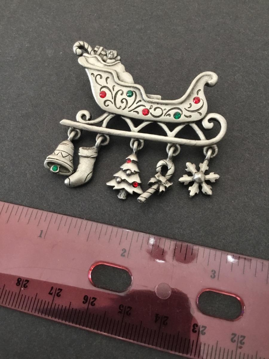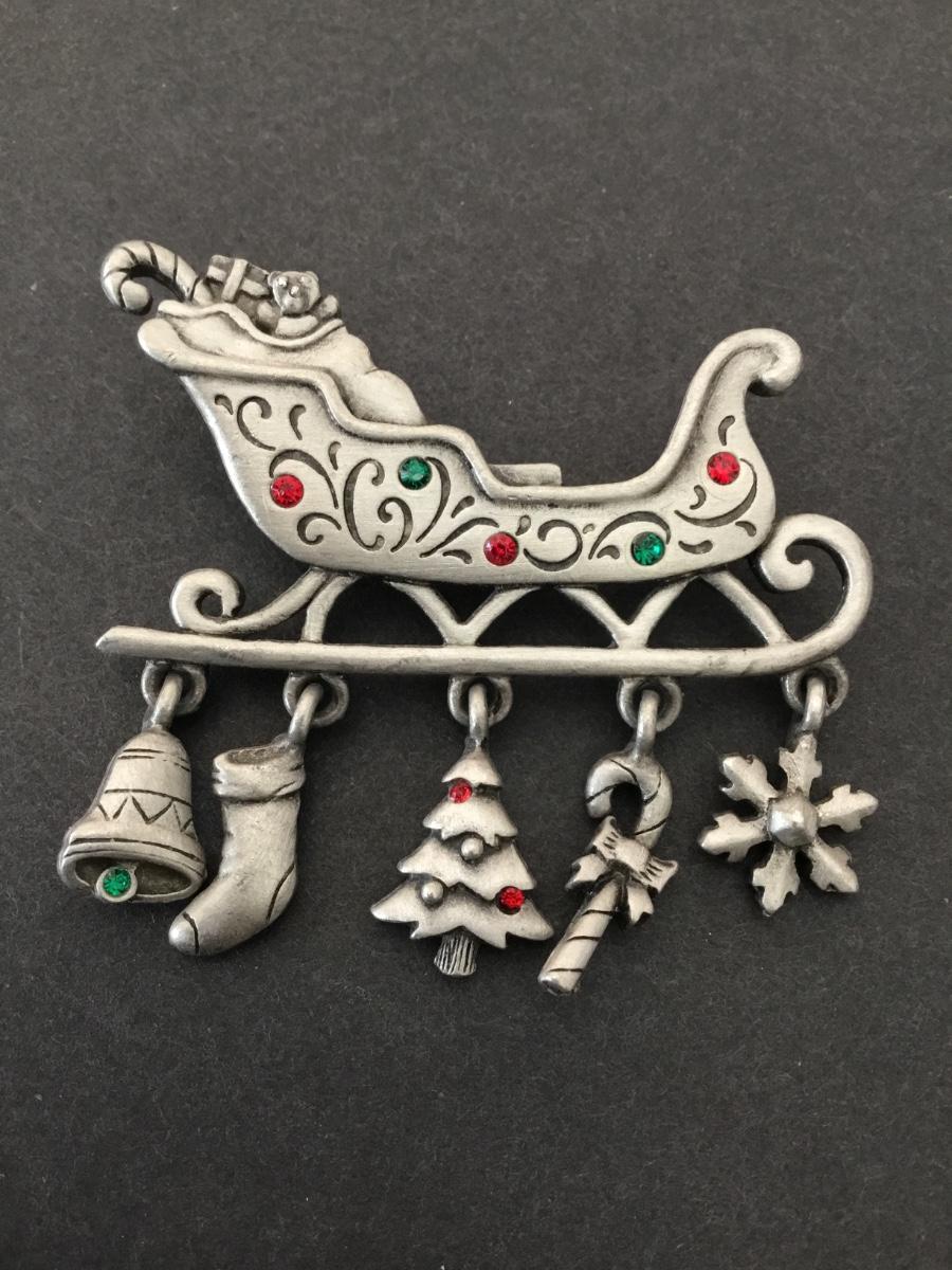 Vintage pewter Christmas sleigh, charm brooch