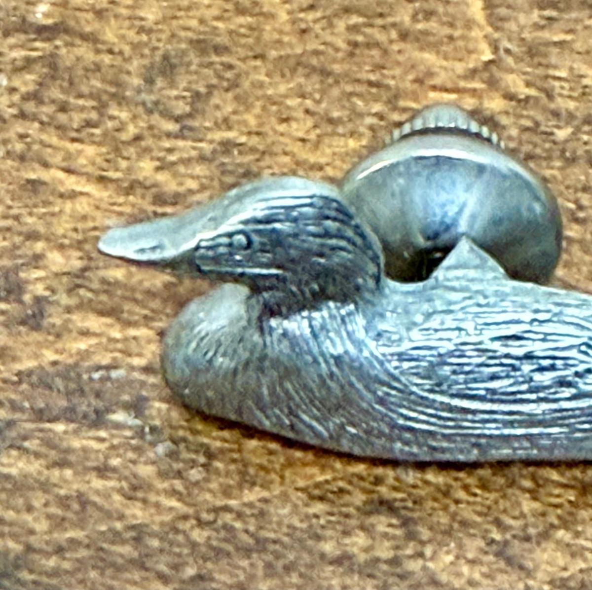 Pewter duck tie tac pin, marked pewter on the back. Great condition.