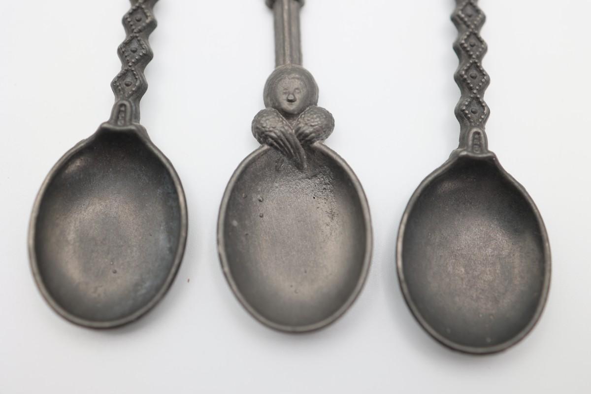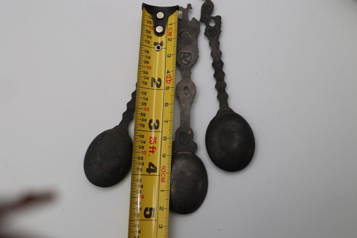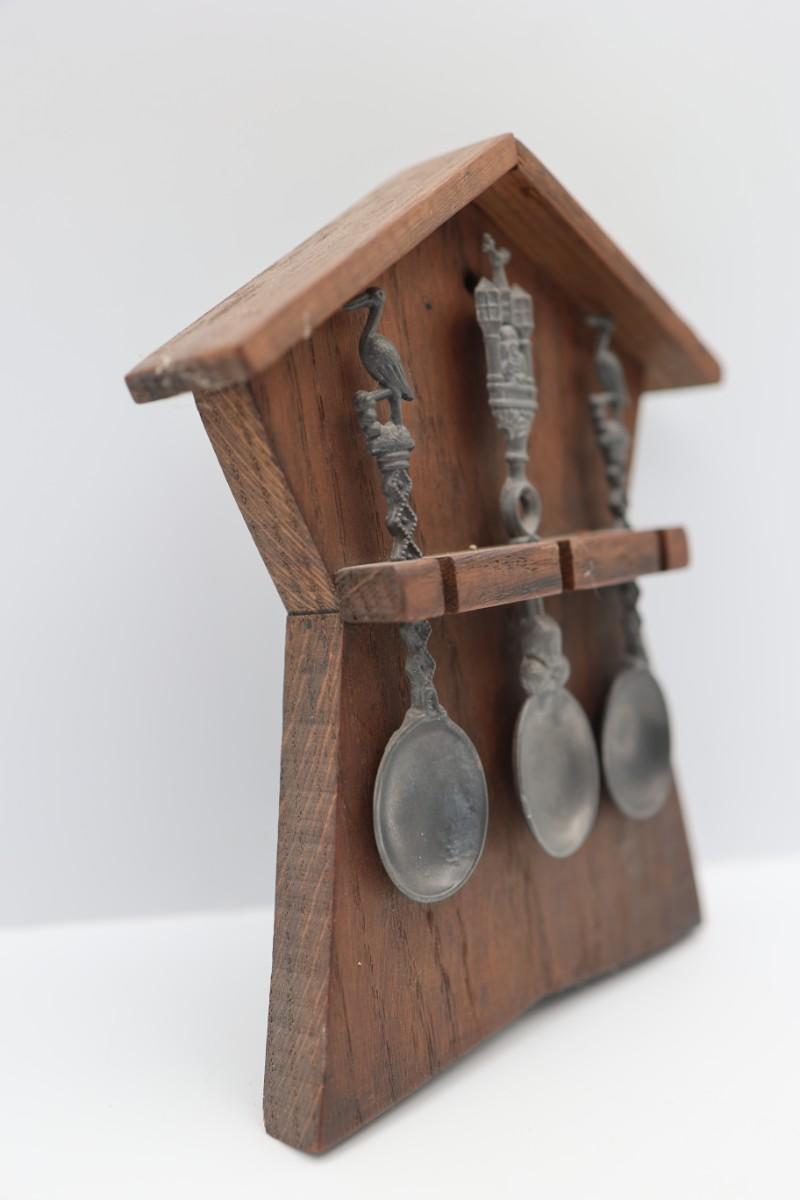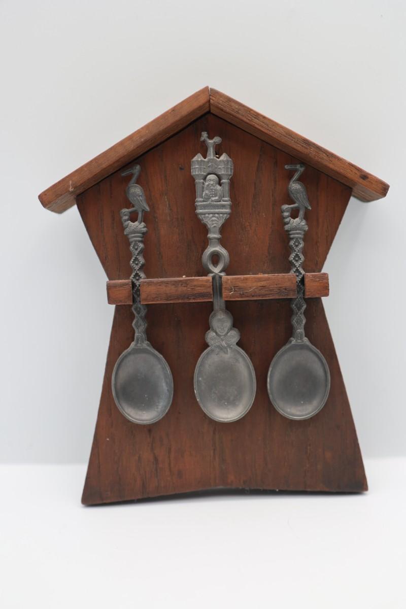 Vintage Pewter Spoons with Wood Wall Hanging Decor