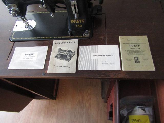 Vintage Pfaff 130 Sewing Machine with Extended Table Surface Work Cabinet Includes Instruction Booklets