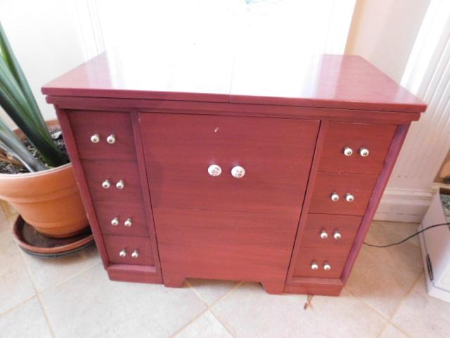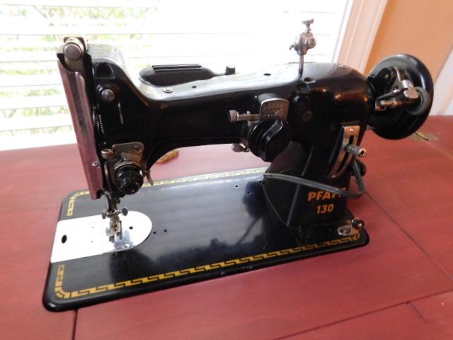 Vintage Pfaff Model 130 Cast Body Sewing Machine and Cabinet