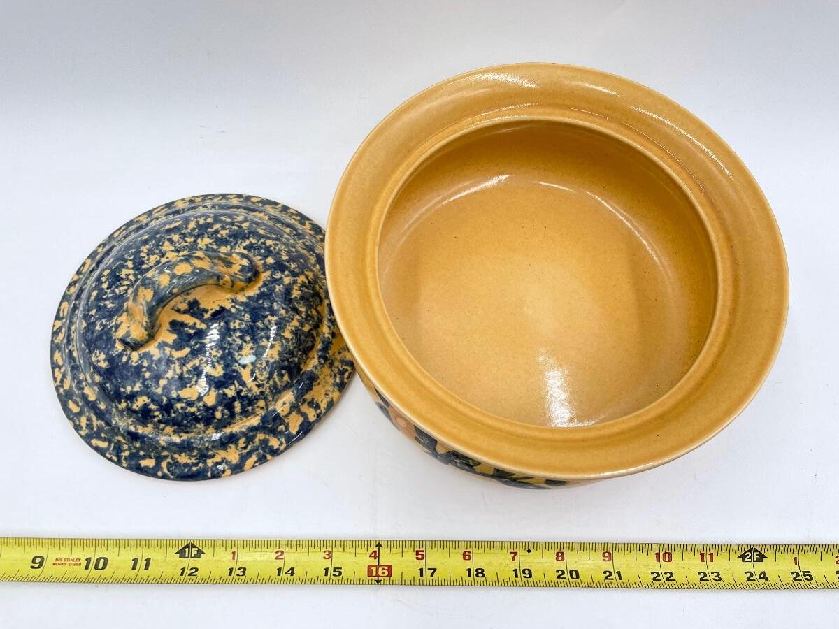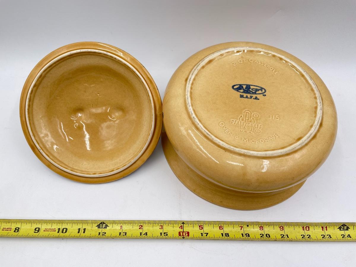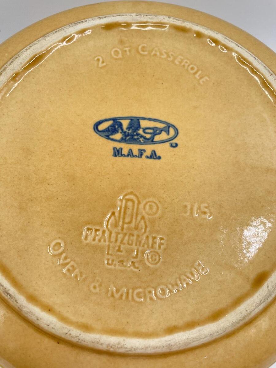 VINTAGE PFALTZGRAFF “AMERICA” YELLOW AND BLUE 2 QUART LIDDED CASSEROLE DISH
