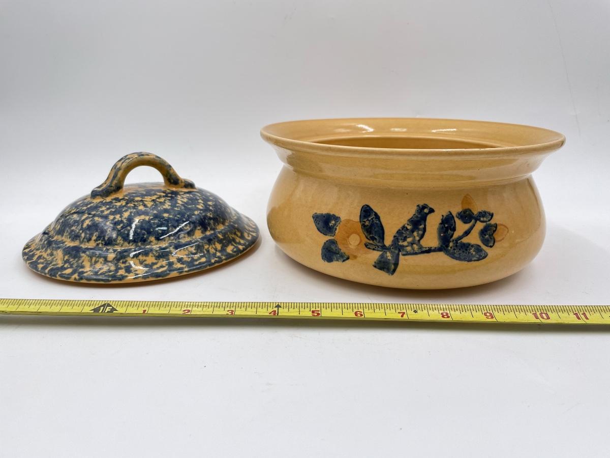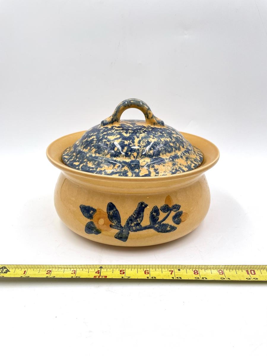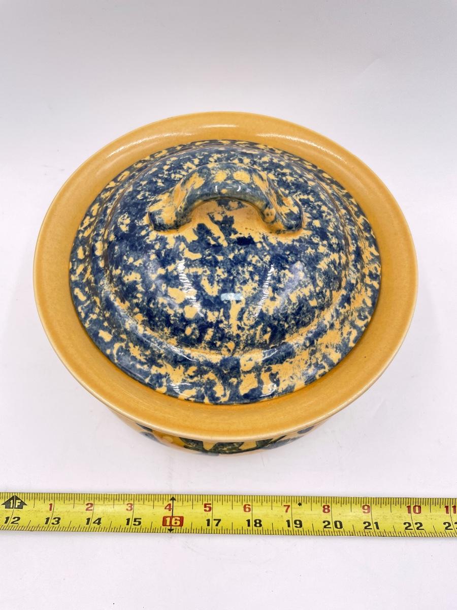 VINTAGE PFALTZGRAFF “AMERICA” YELLOW AND BLUE 2 QUART LIDDED CASSEROLE DISH