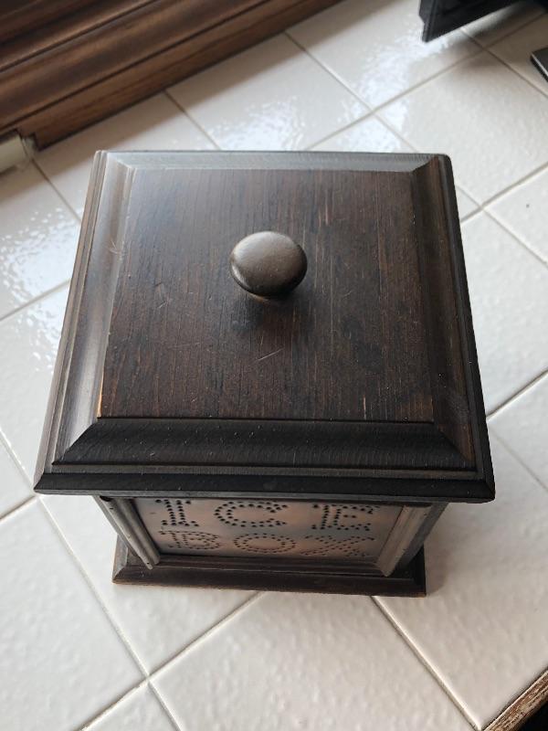 Vintage Pfaltzgraff Square Wooden Ice Bucket Metal Plated Bucket Box