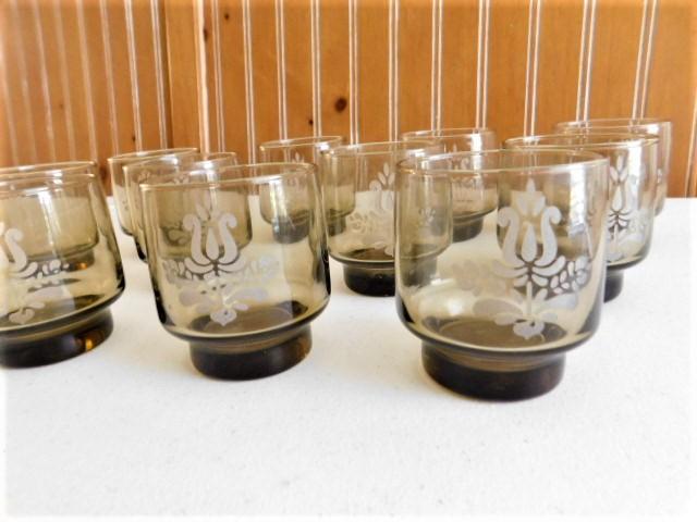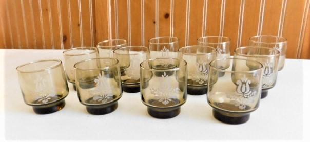 Vintage Pfaltzgraff Village 12pc Set Smoke Color Juice Glasses