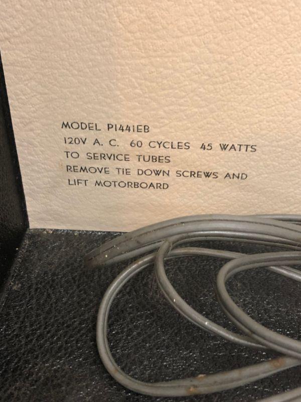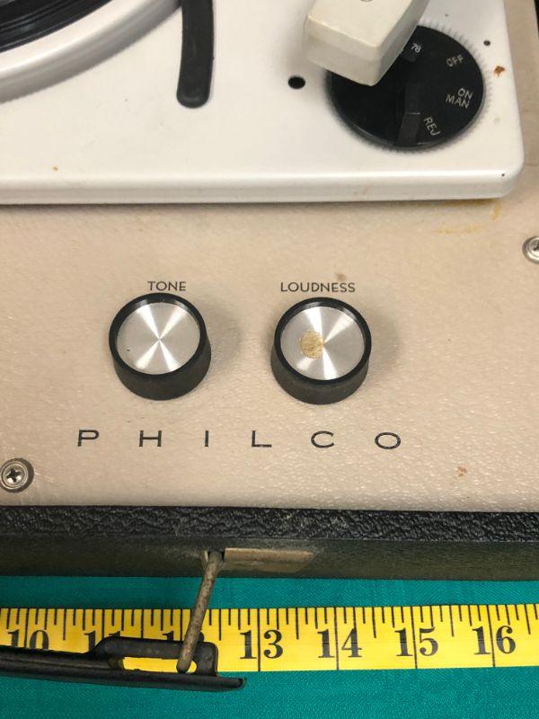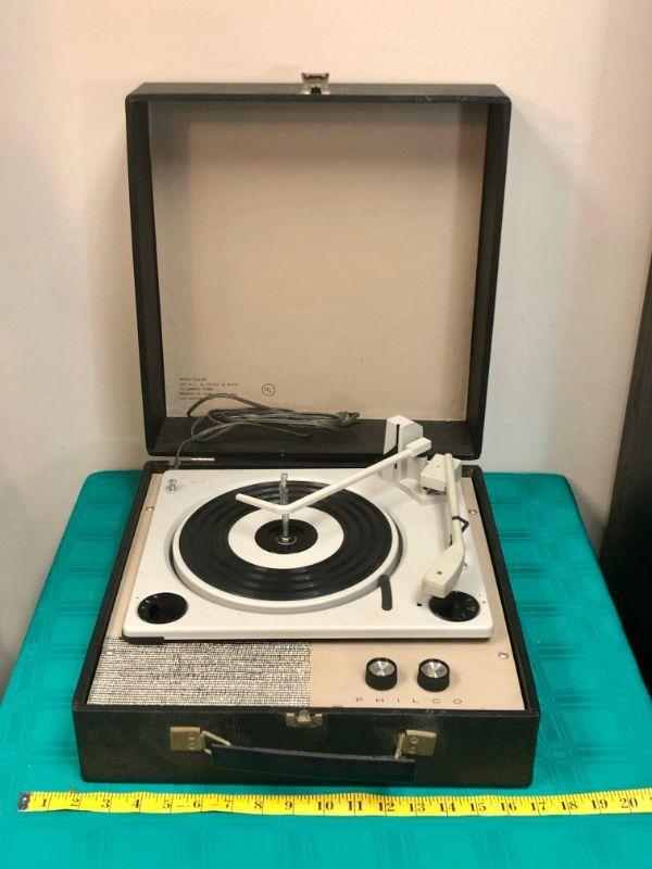 Vintage Philco Record Player. Model #P1441EB. Speaker and player all in one. Comes in a travel case. Untested.