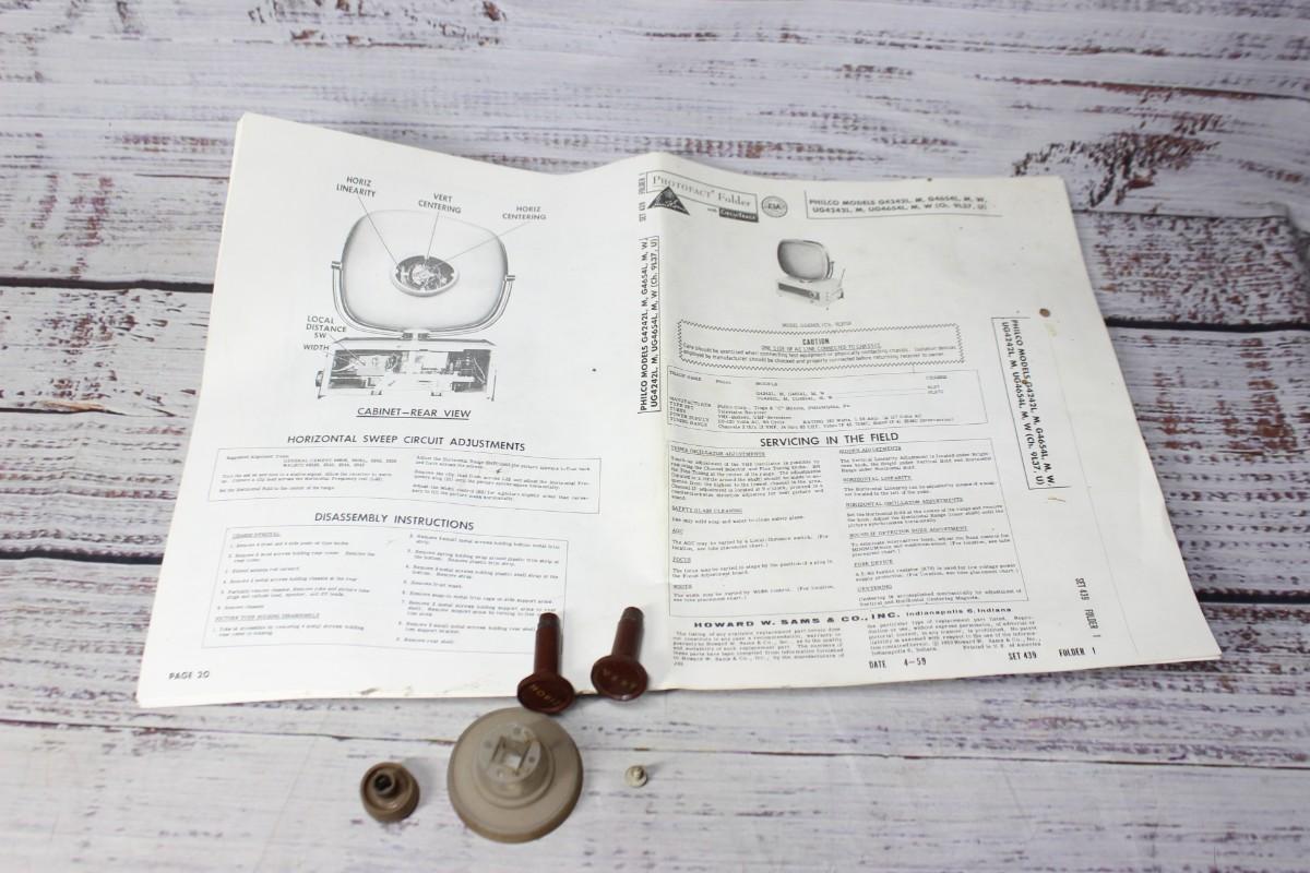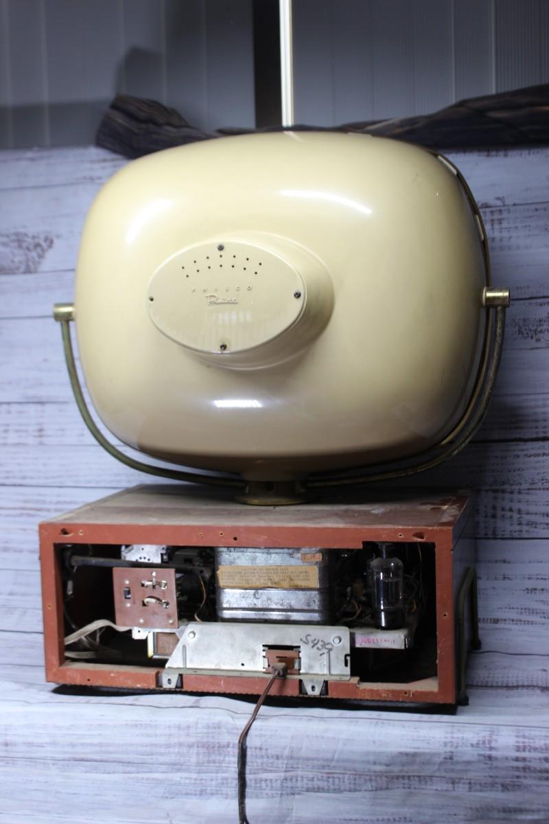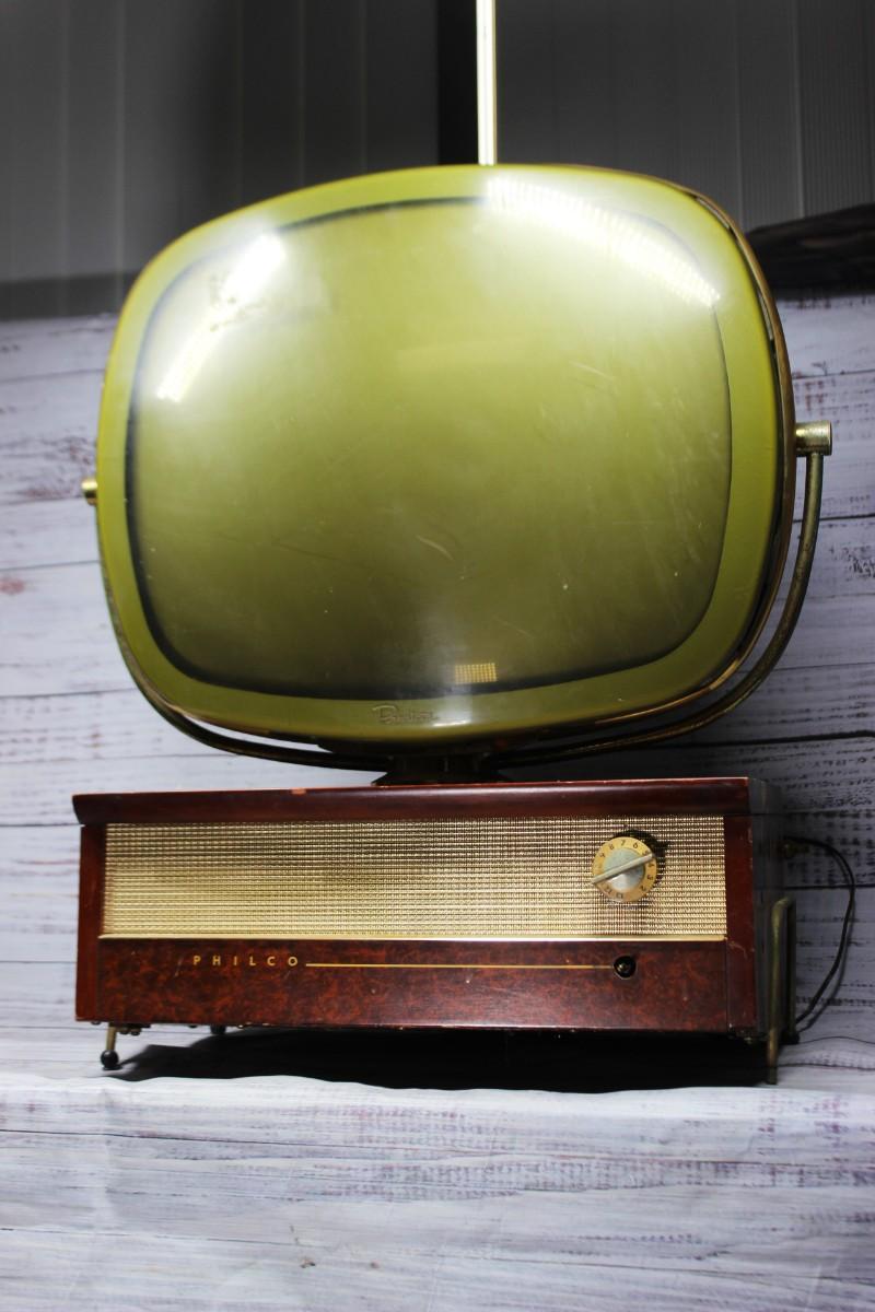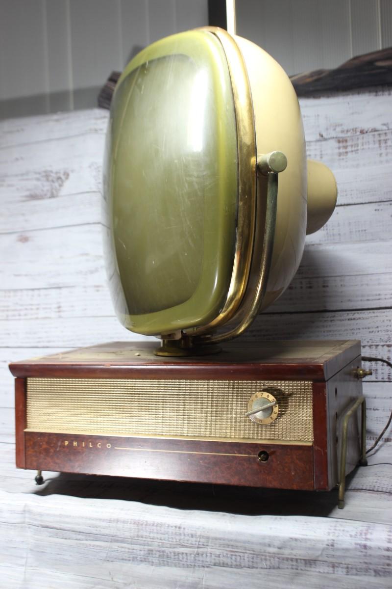 Vintage Philco Predicta Television TV Set. Has been plugged in, the light in back of the dial works, but is a bit dim. The tubes in the back of the unit do warm and light up. Comes with paper manual. In good condition. displays great. Very heavy.