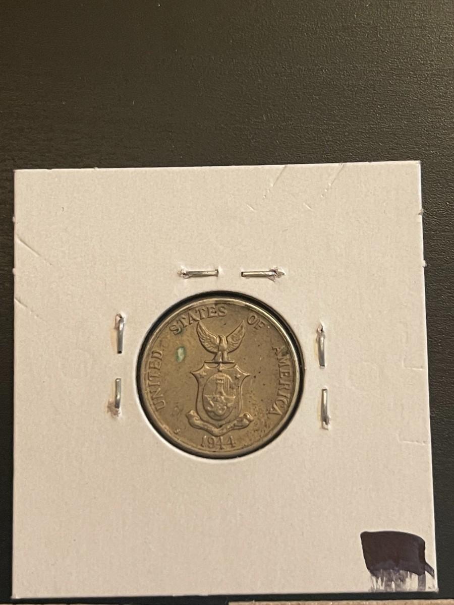 (5) Vintage Philippines Coins - 1944S 5 centavos, 1944S 50 centavos, 1945D 20 centavos, 1944D 10 centavos, 1944S centavos.
