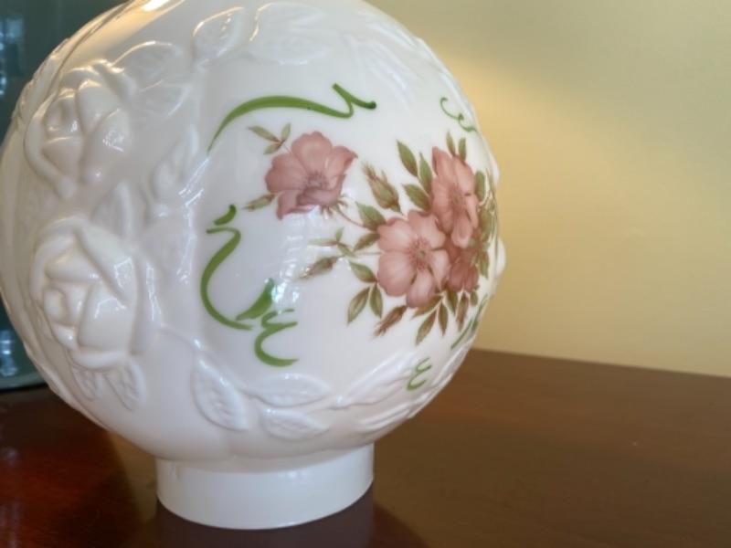 Vintage Phoenix table lamp with lovely Wild Rose decoration on embossed milk glass in classic Gone with the Wind oil lamp style. Has interior hurricane shade - you could use alone or with upper shade.