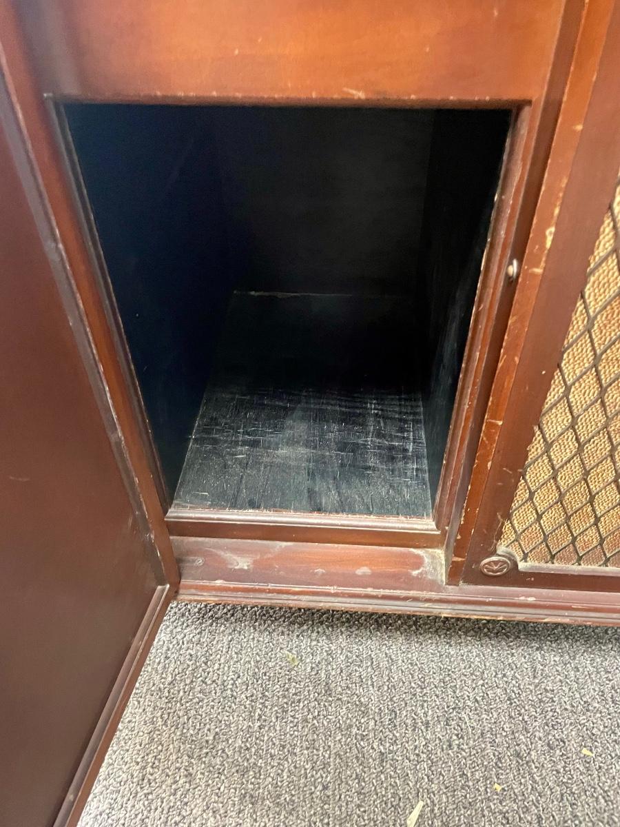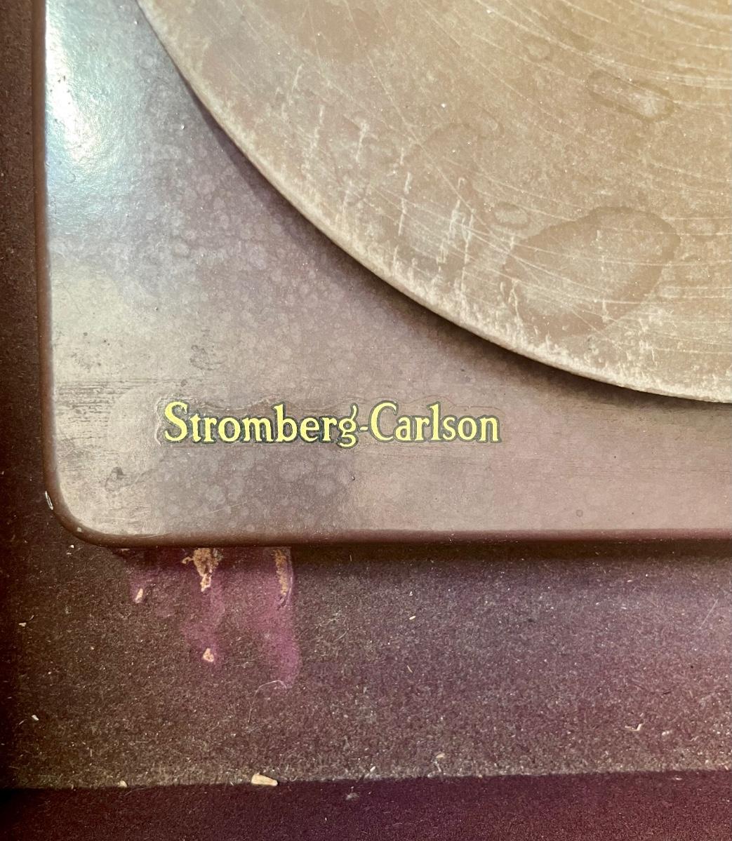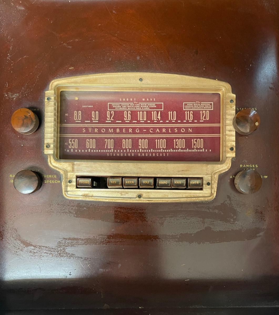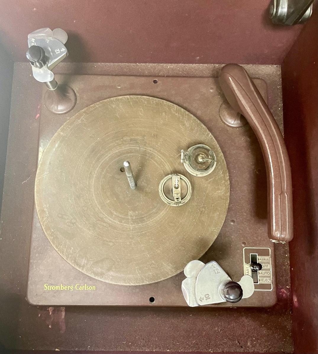 By Stromberg Carlson.. hardwood cabinet is in good overall condition but could use refinishing. Radio and phonograph are untested.