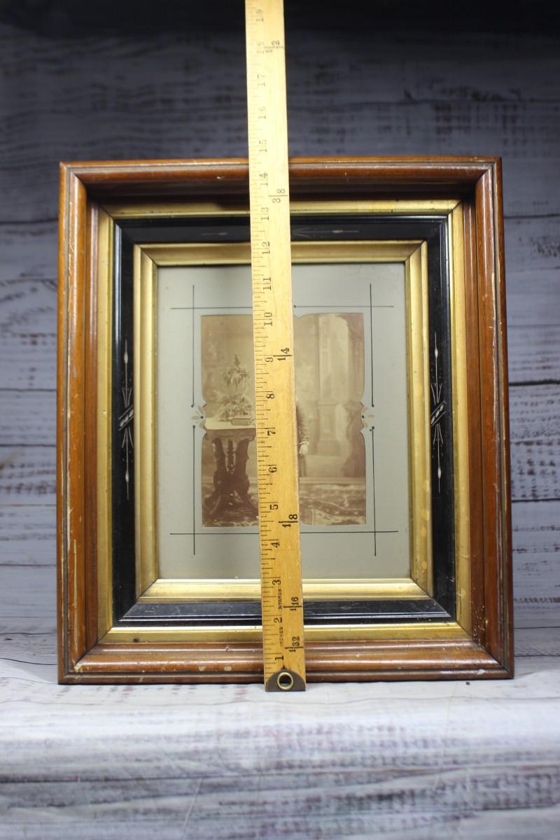 Vintage Photo Frame with an Antique Photo Card of Little Girl, there is no significant damage to the frame or protective glass and is in good vintage condition. Check pictures for more details and for sizing.
