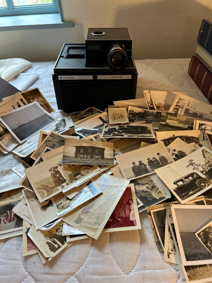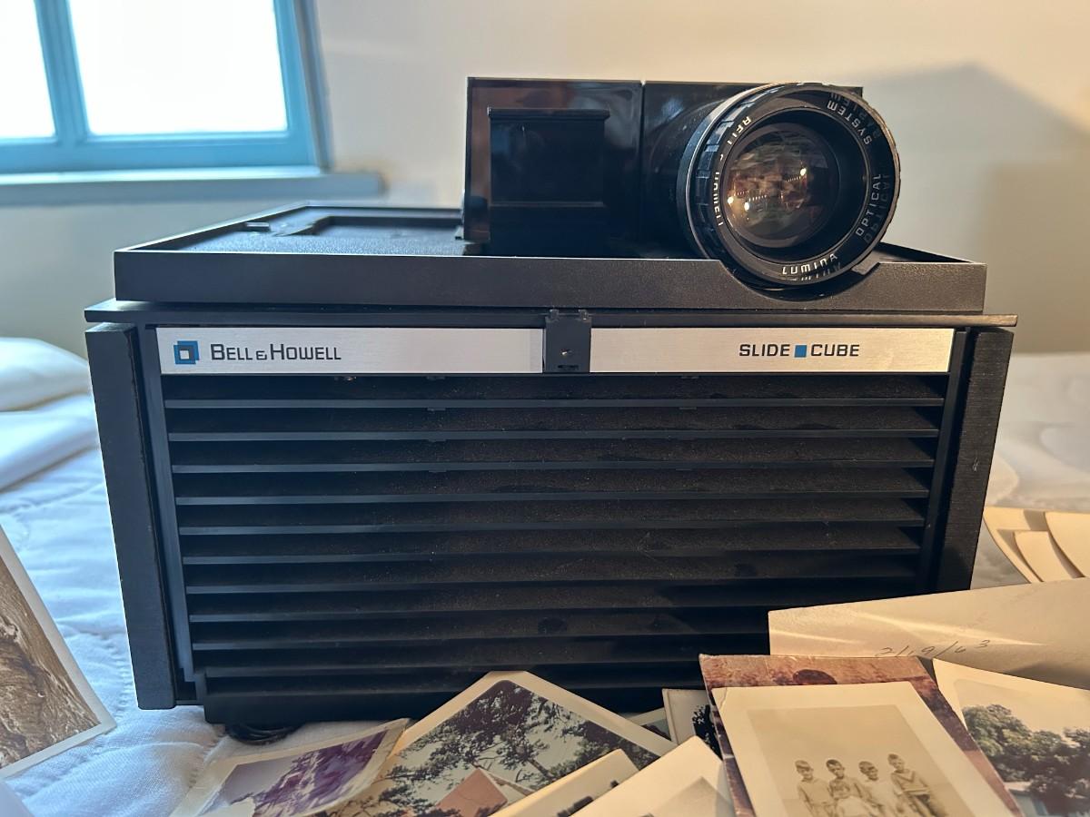 Bell & Howell slide projector and vintage photographs