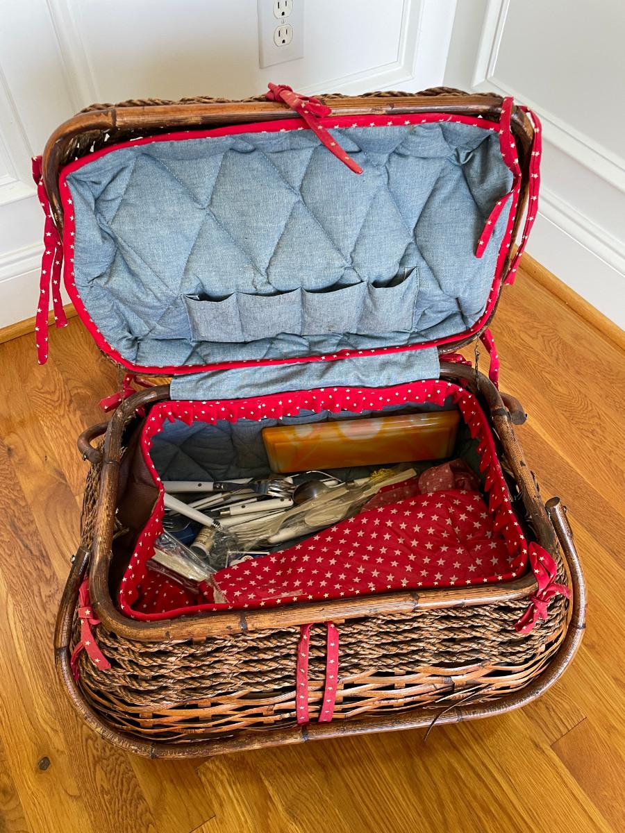 Comes with tablecloth, 3 cloth napkins, and some miscellaneous utensils