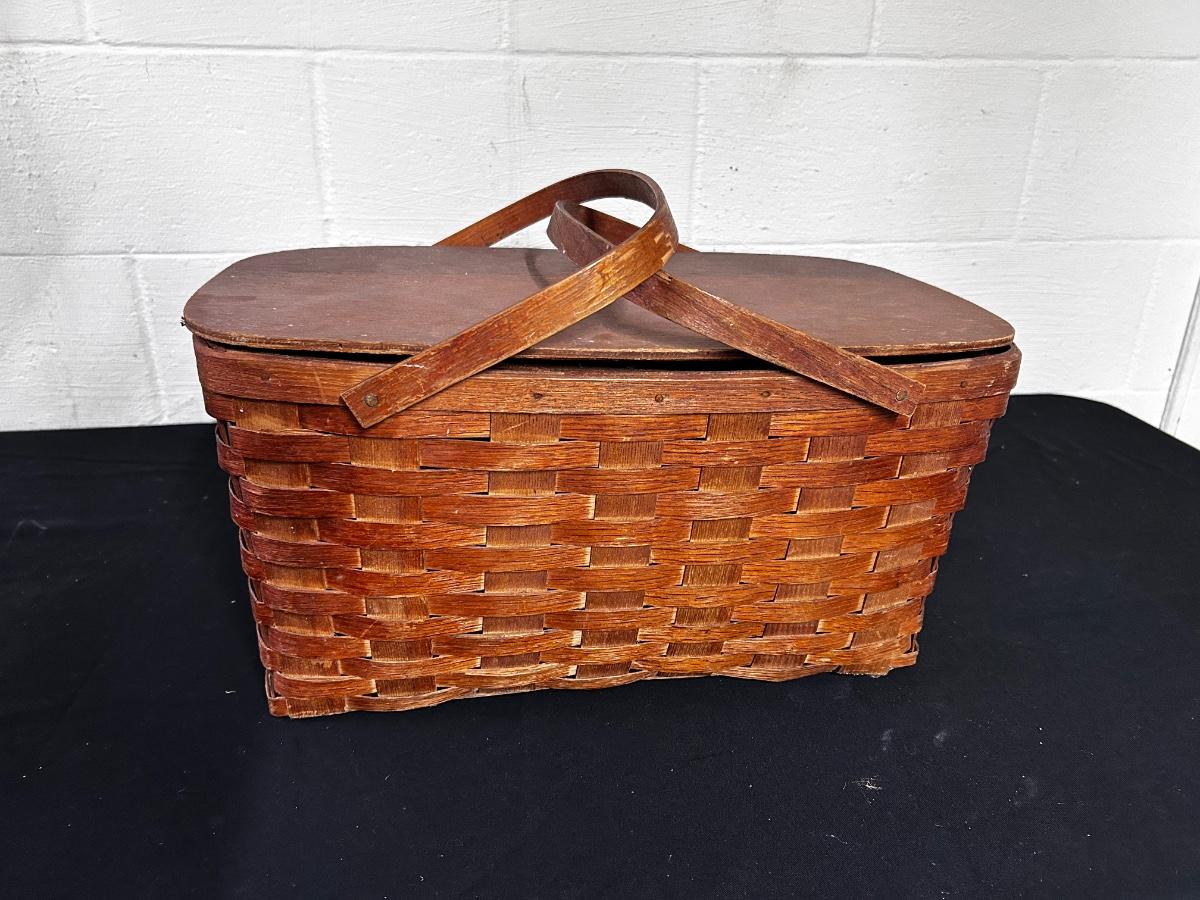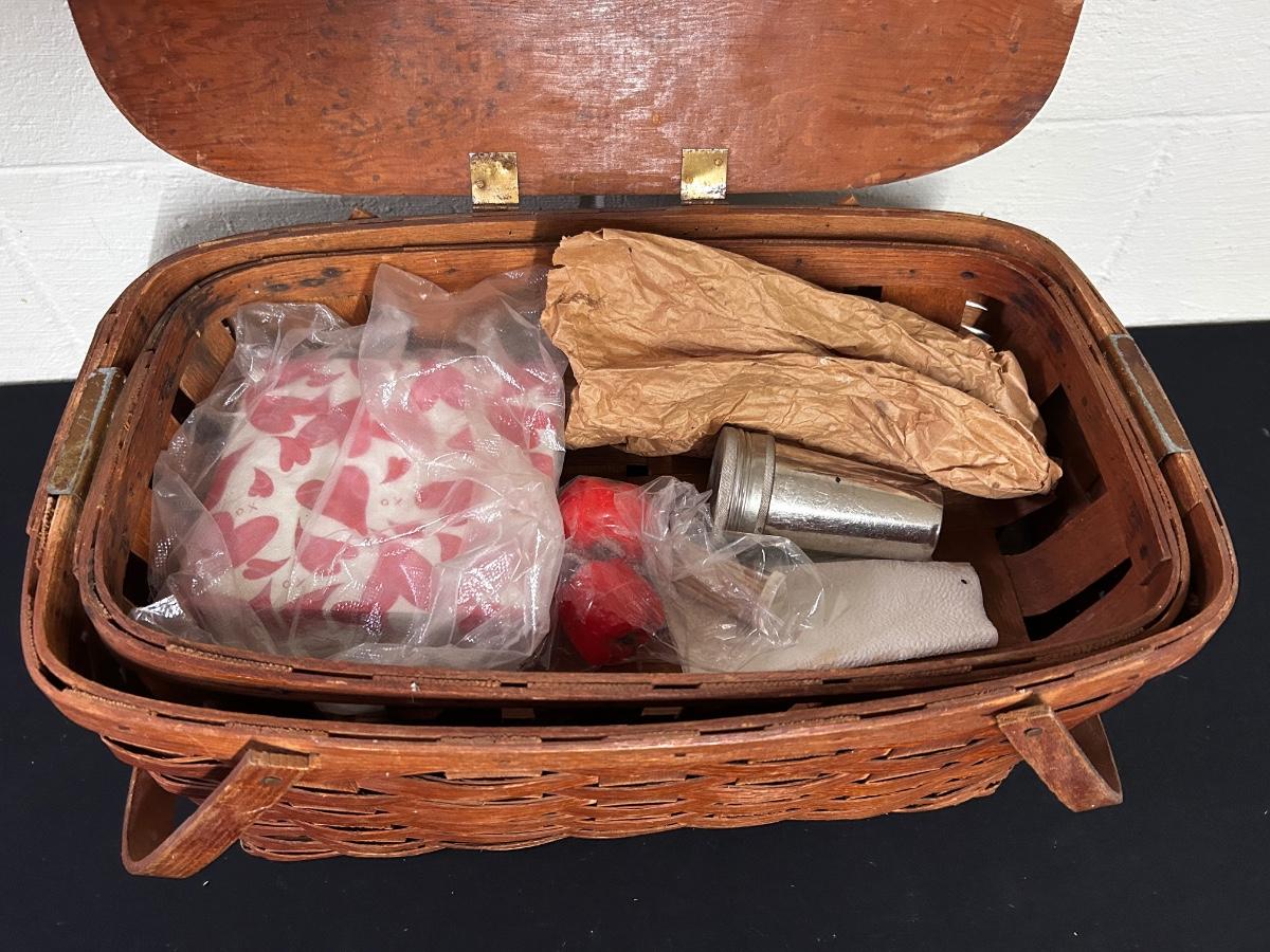Vintage Peterboro Basket Company New Hampshire Picnic Basket + contents