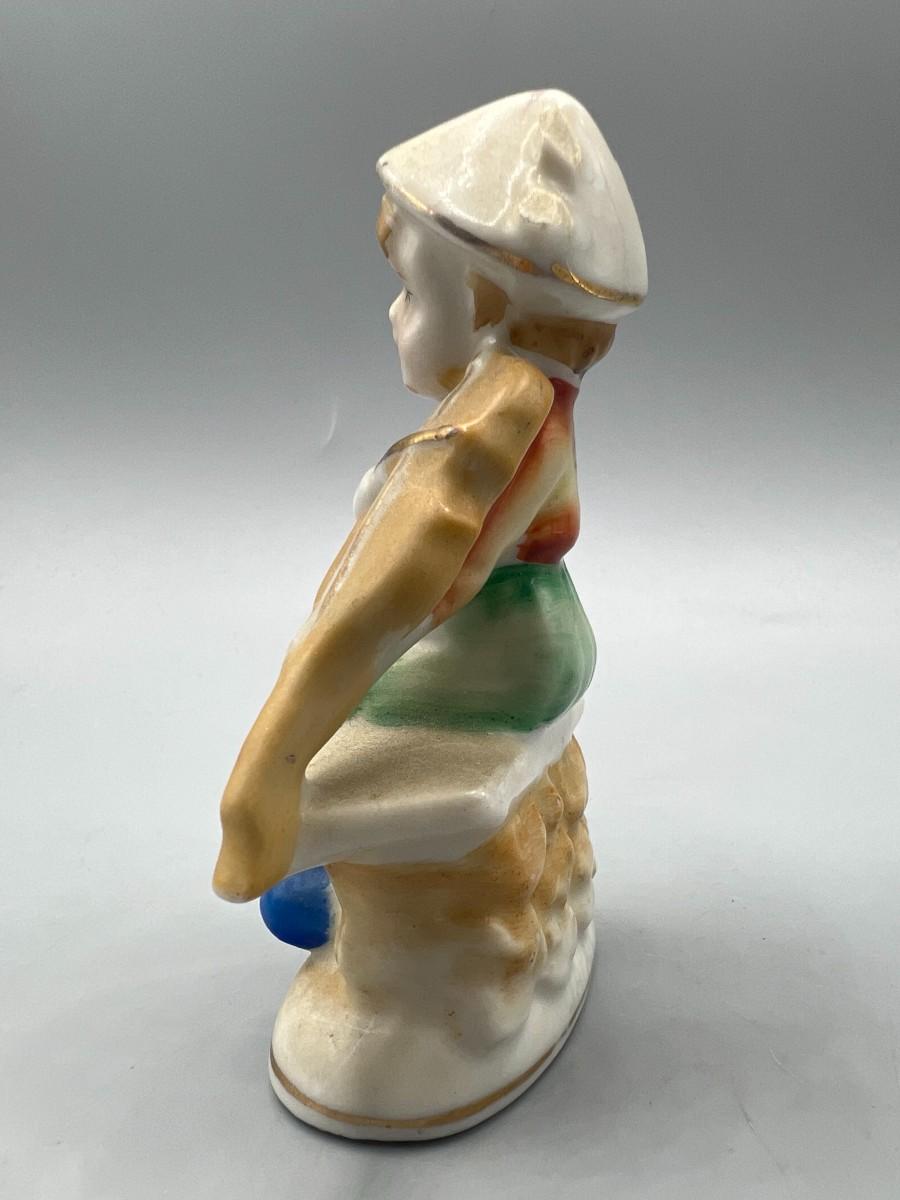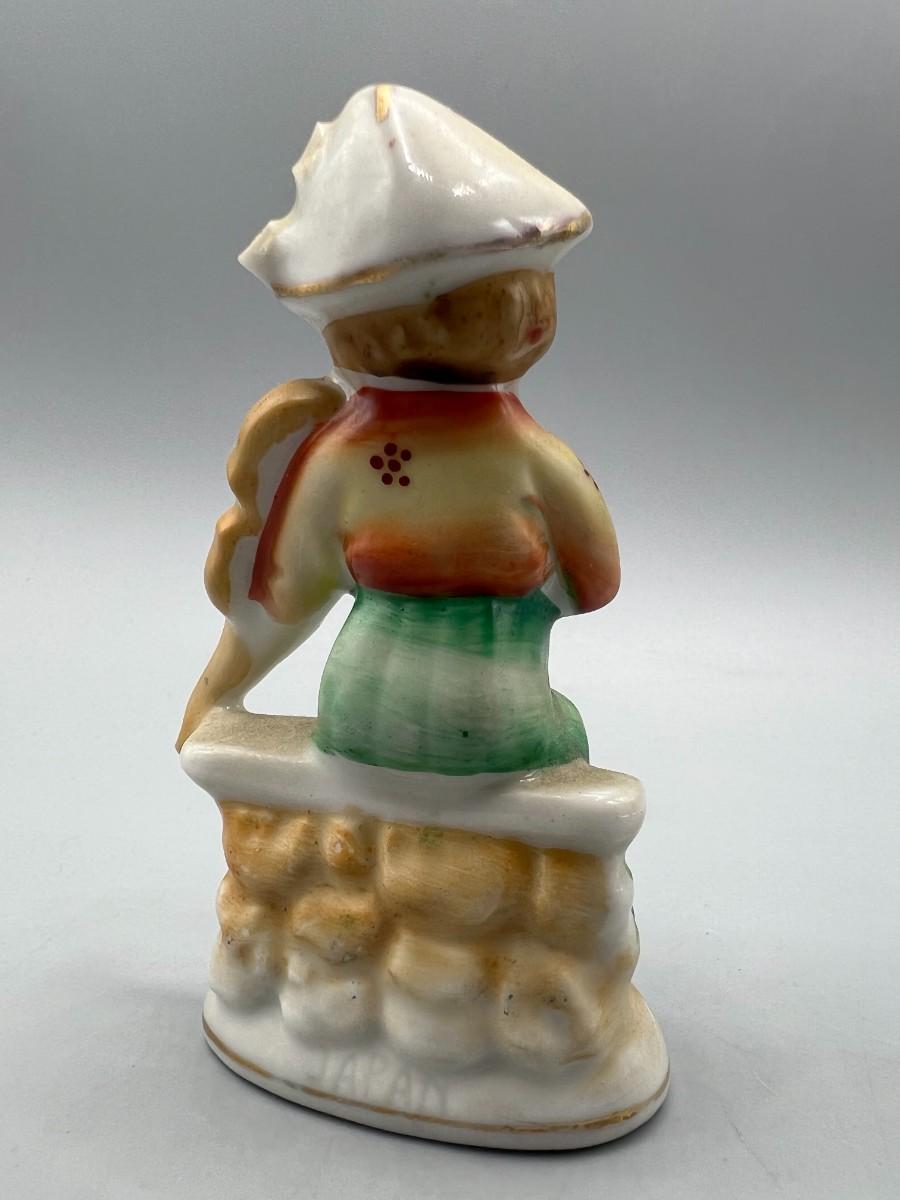 There is a cracked piece on top of the head/hat of the figurine, but there is no other significant damage and is in overall good collectible or displayable condition. Check pictures for more details and for sizing.