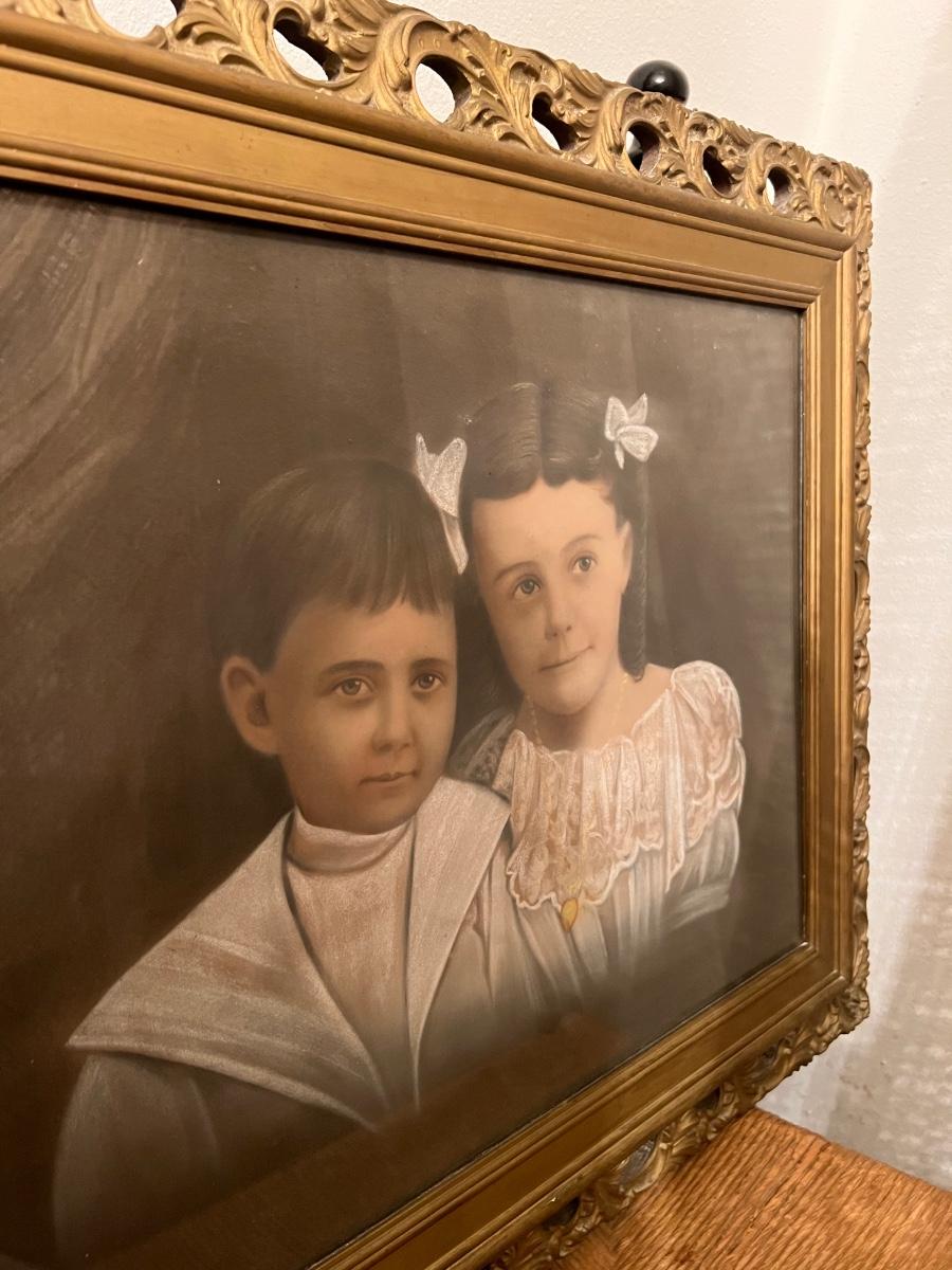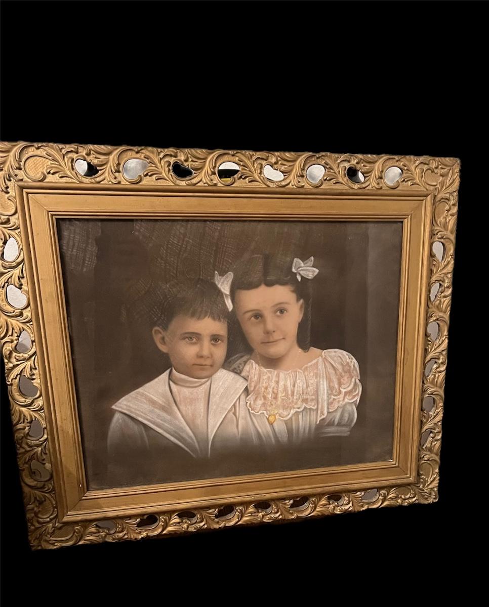 Vintage Picture Brother & Sister 27 inches long, 23 inches tall