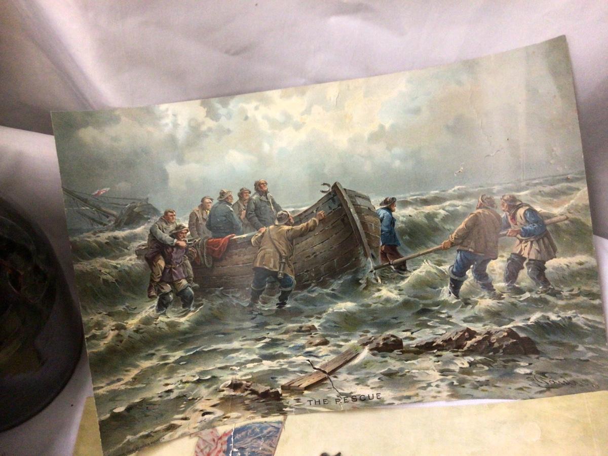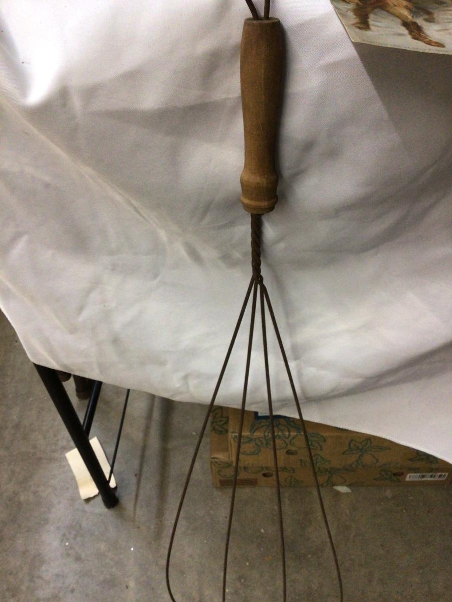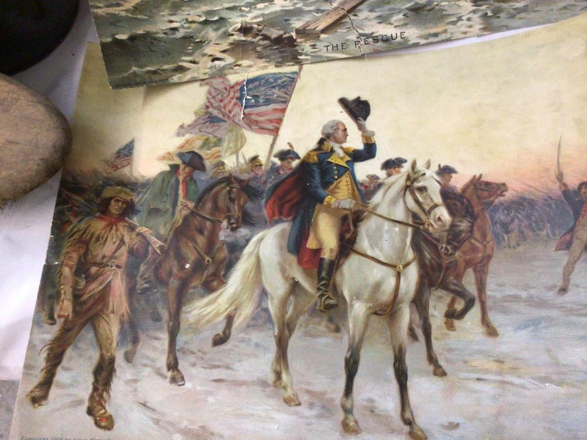 You get two vintage picture General Washington, and fishing boat. There is also a vintage rug beater, nice brown jug, and a really cool vintage industrial floor scrub brush with a foot/hand strap.