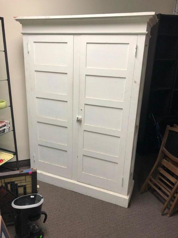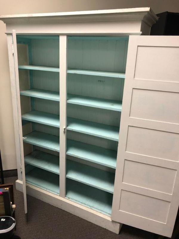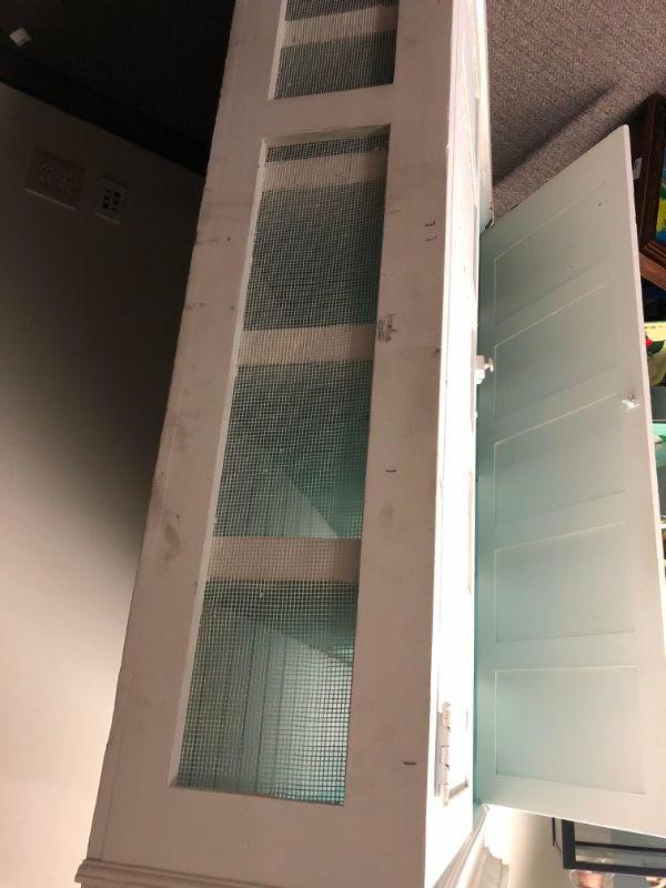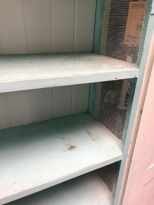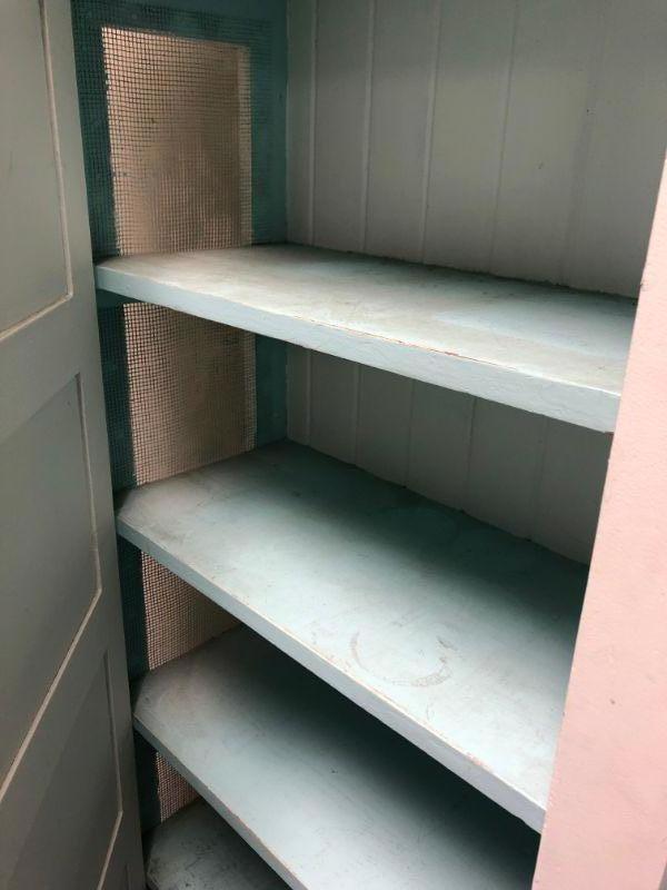 VINTAGE PIE SAFE, PAINTED WHITE WITH BLUE INTERIOR