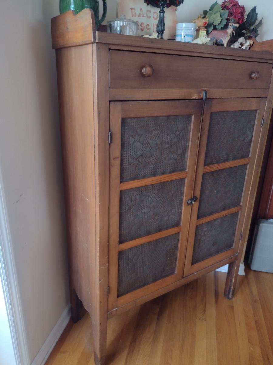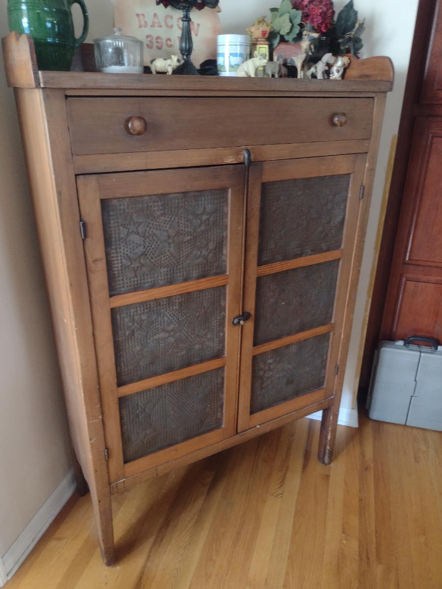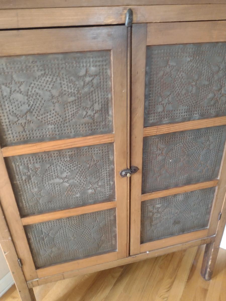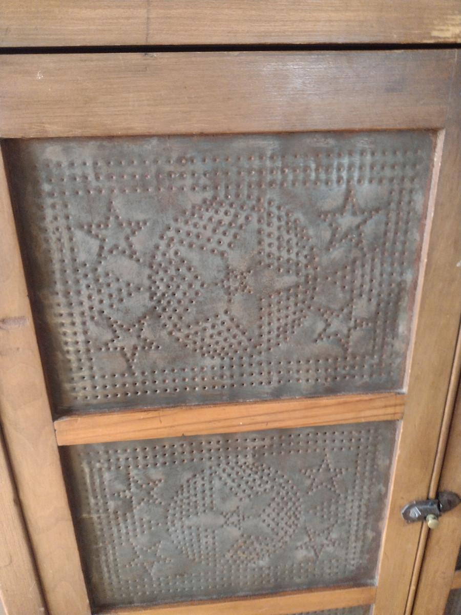 Vintage Pie Safe with Punched Tin Door Panels- Approx 38" Wide, 15 1/2" Deep, 58" Tall