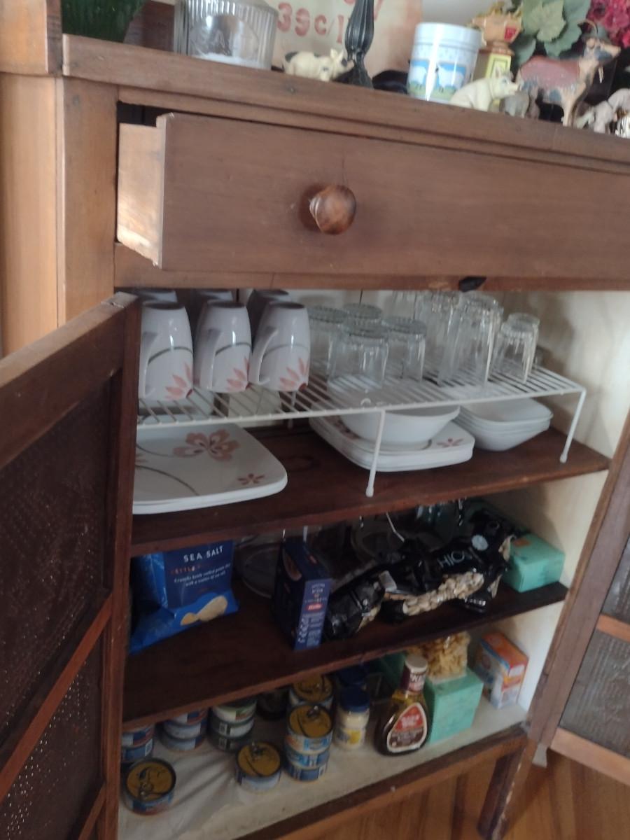 Vintage Pie Safe with Punched Tin Door Panels- Approx 38" Wide, 15 1/2" Deep, 58" Tall. No contents included.