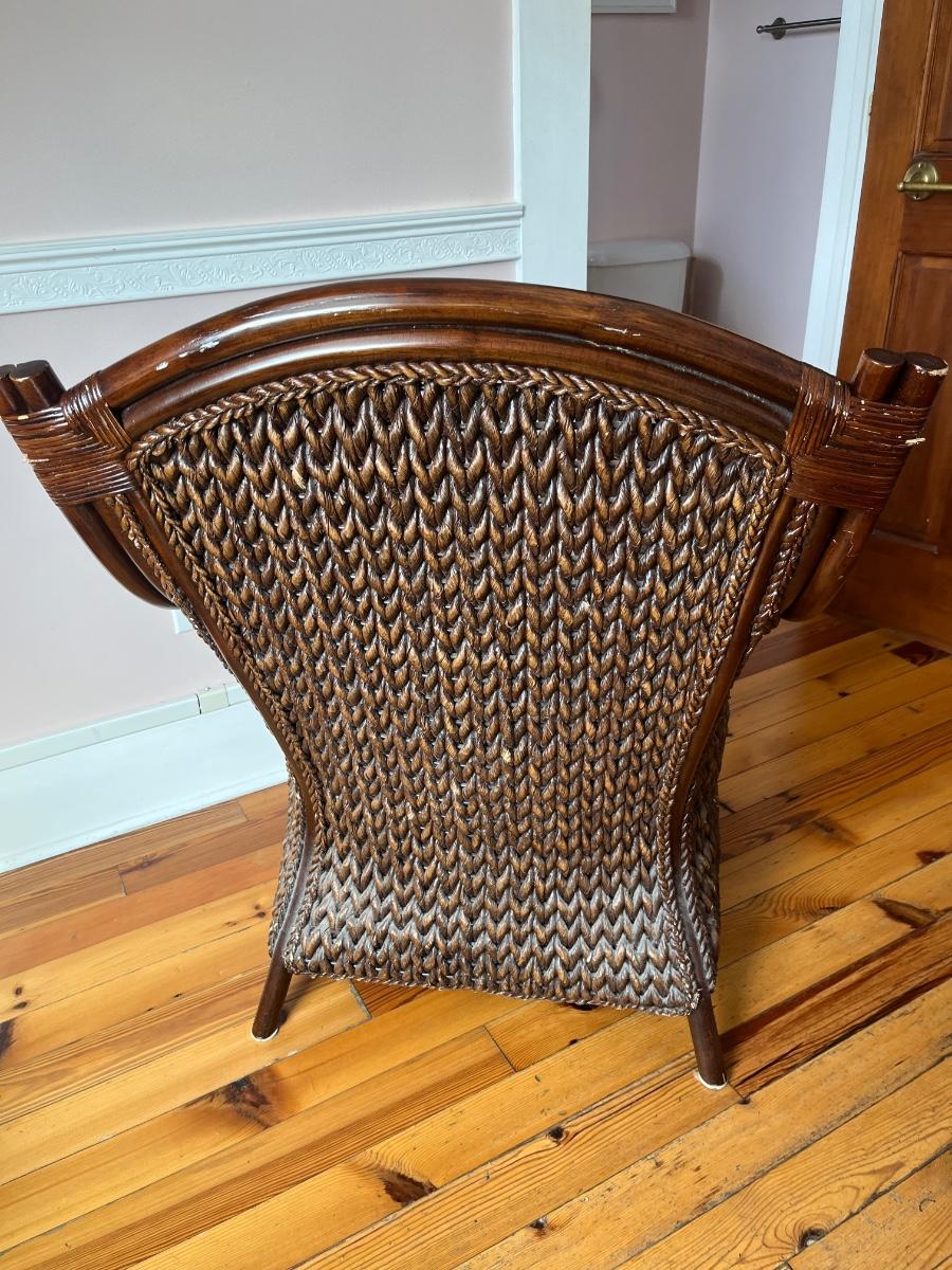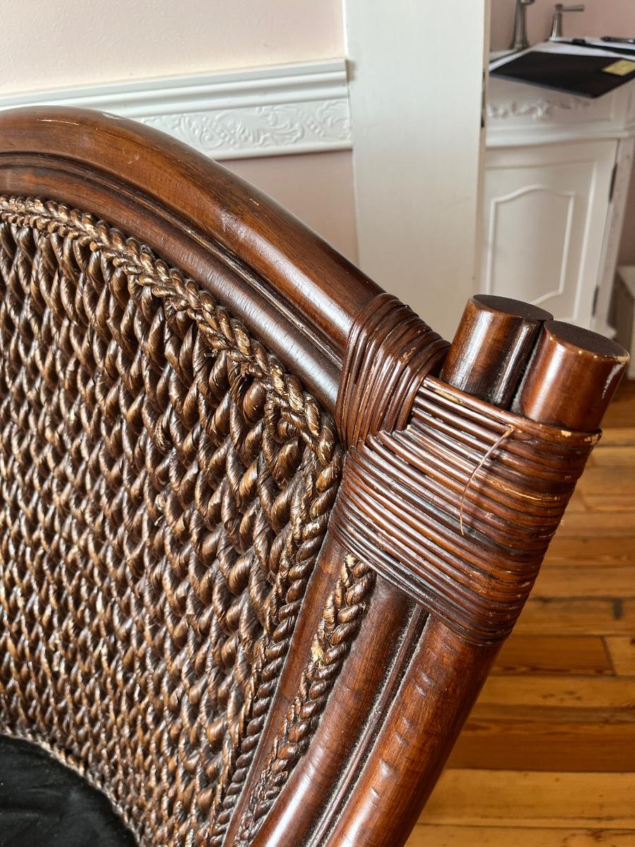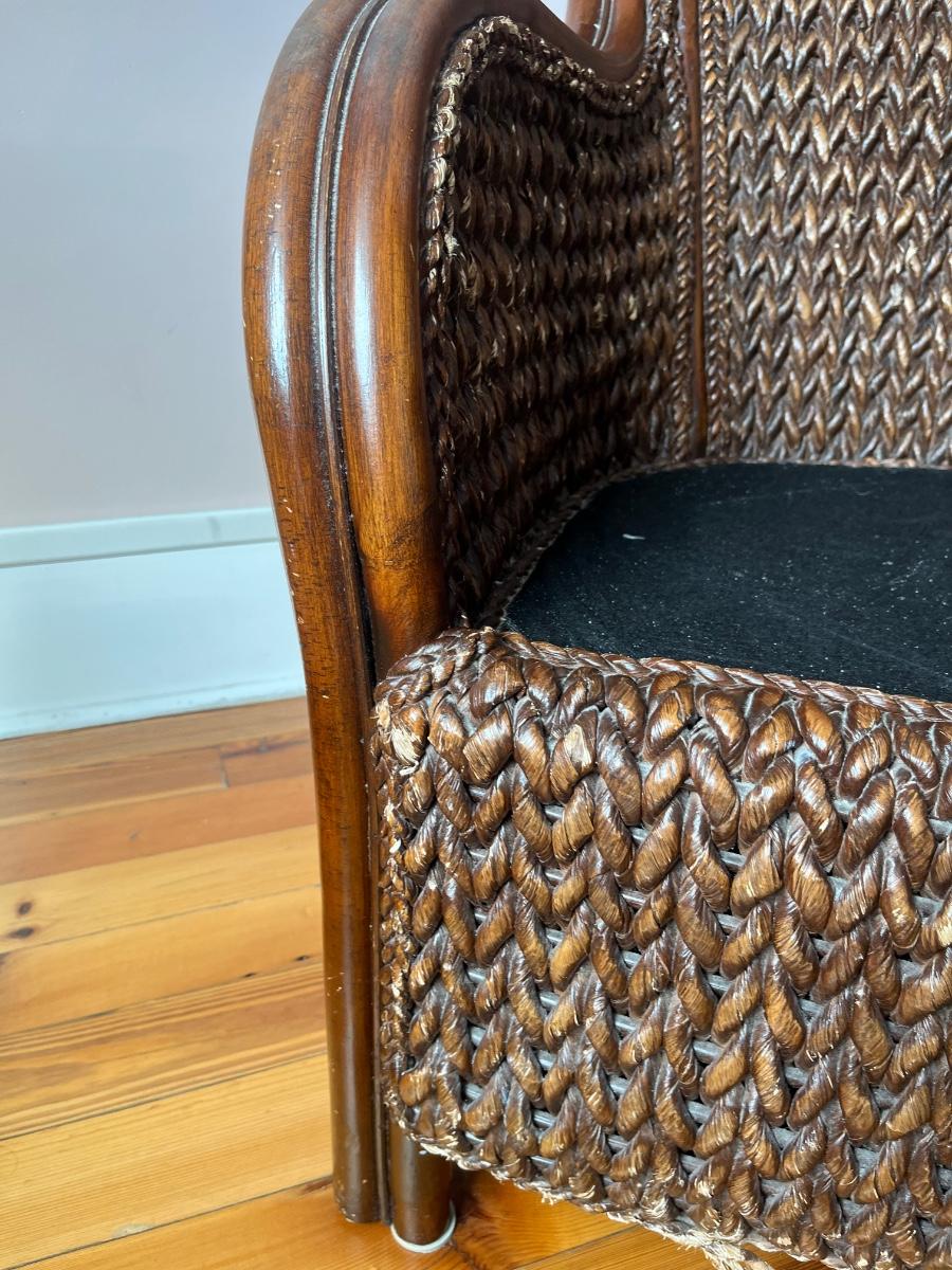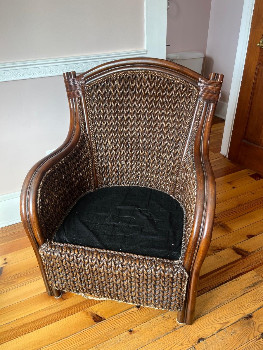 Pier 1 wicker/Indonesian seagrass King armchair; approx. H: 15" (seat) x 30.5" x 30", 39" (back)