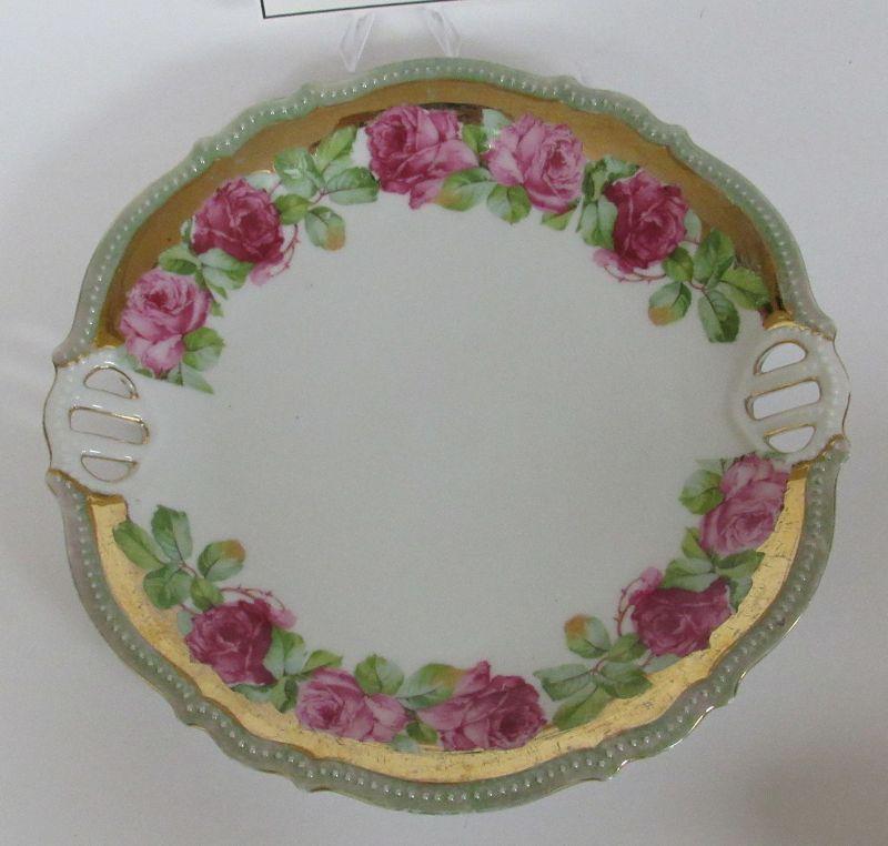 Vintage Selesia Pierced Plate With Pink Roses