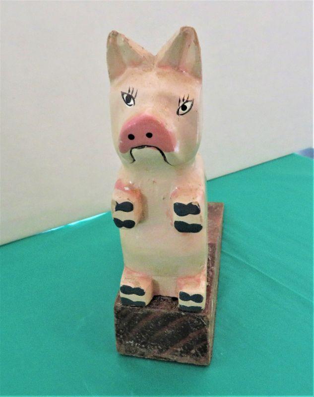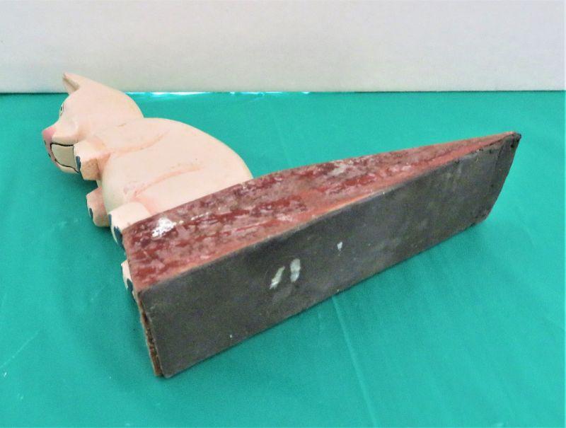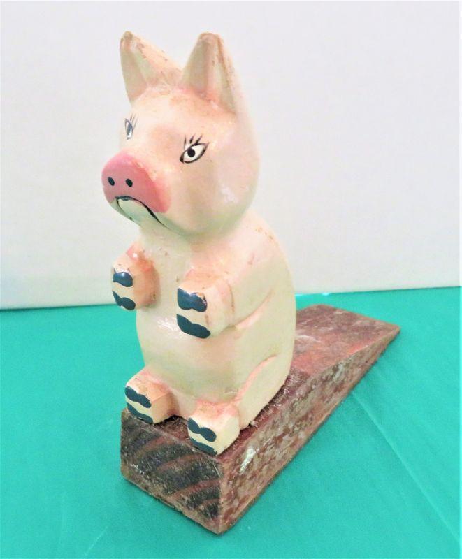 Unique Vintage Handpainted Wood PIG WOOD on Wooden DOOR STOPPER Hand painted