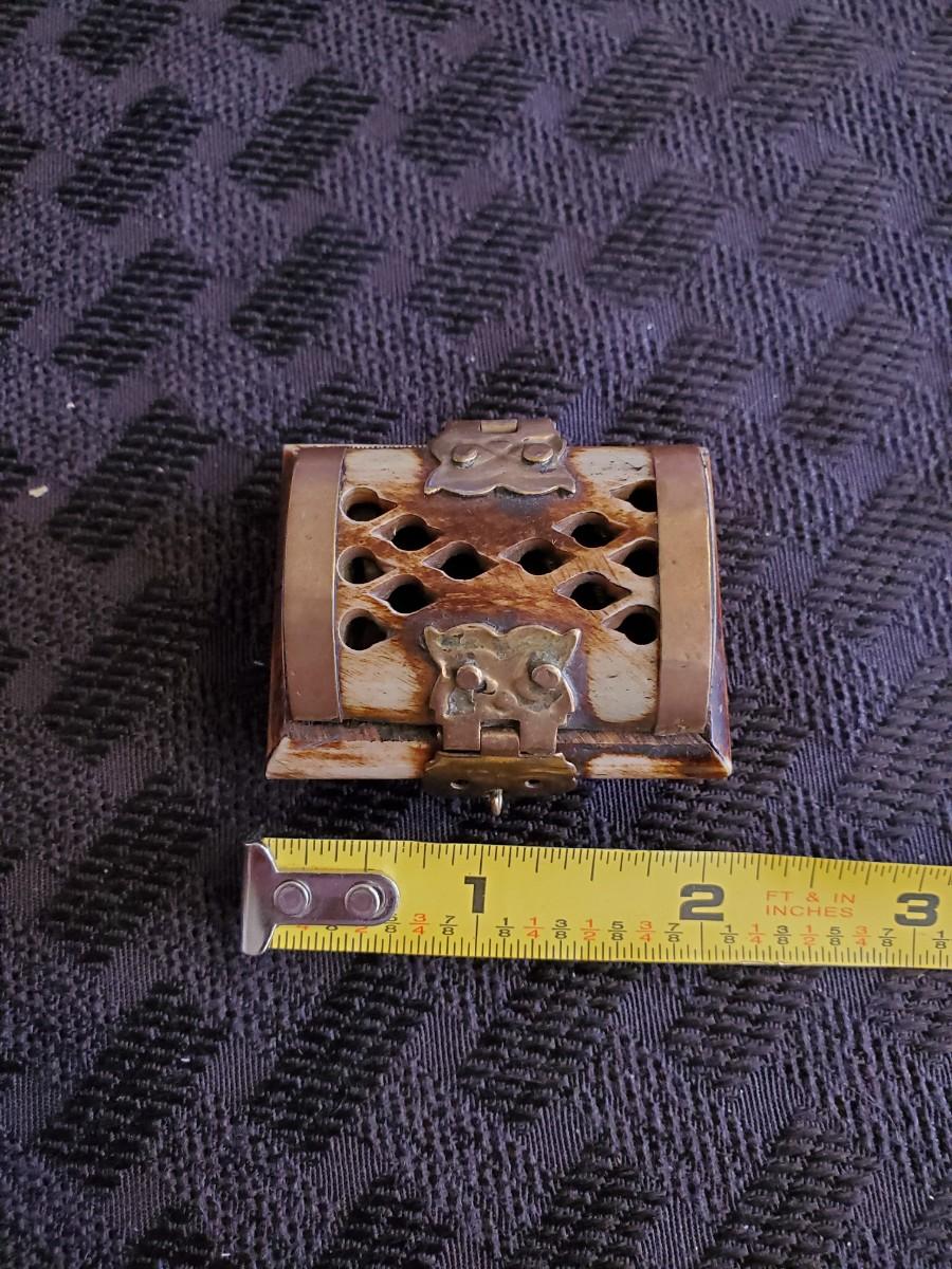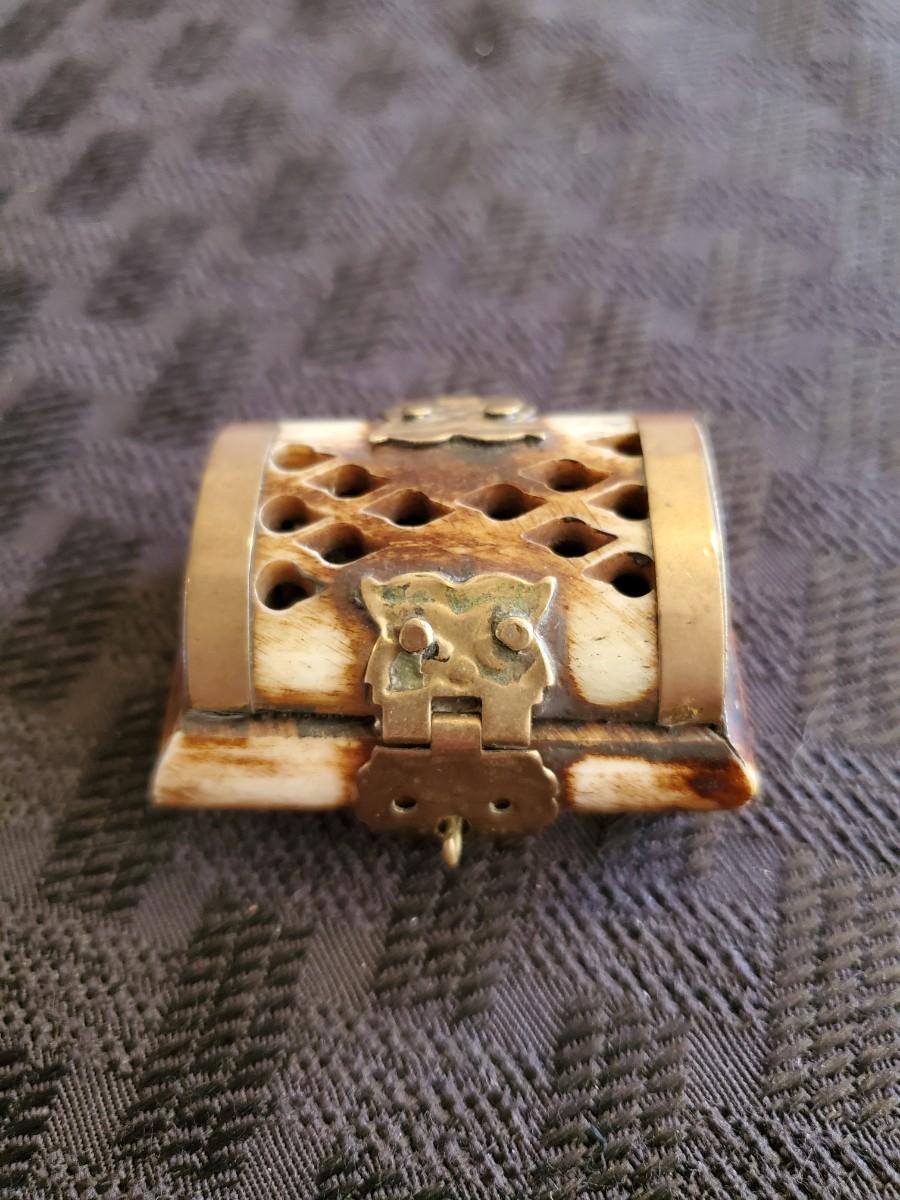 Vintage Ivory and Brass Miniature Jewelry Pill Box