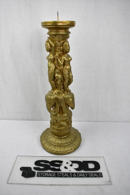 Vintage Pillar Candle Holder with 3 women, 3 elephants, & other misc animals