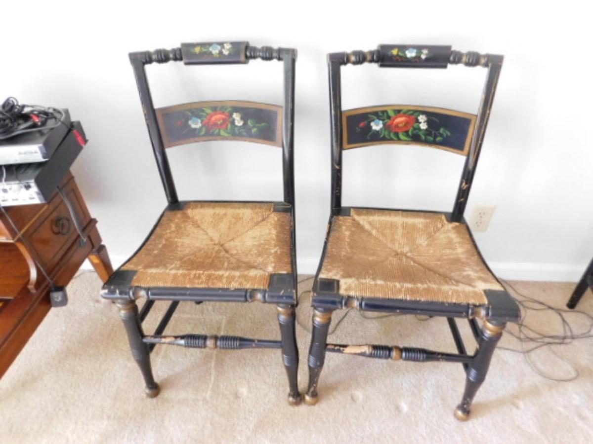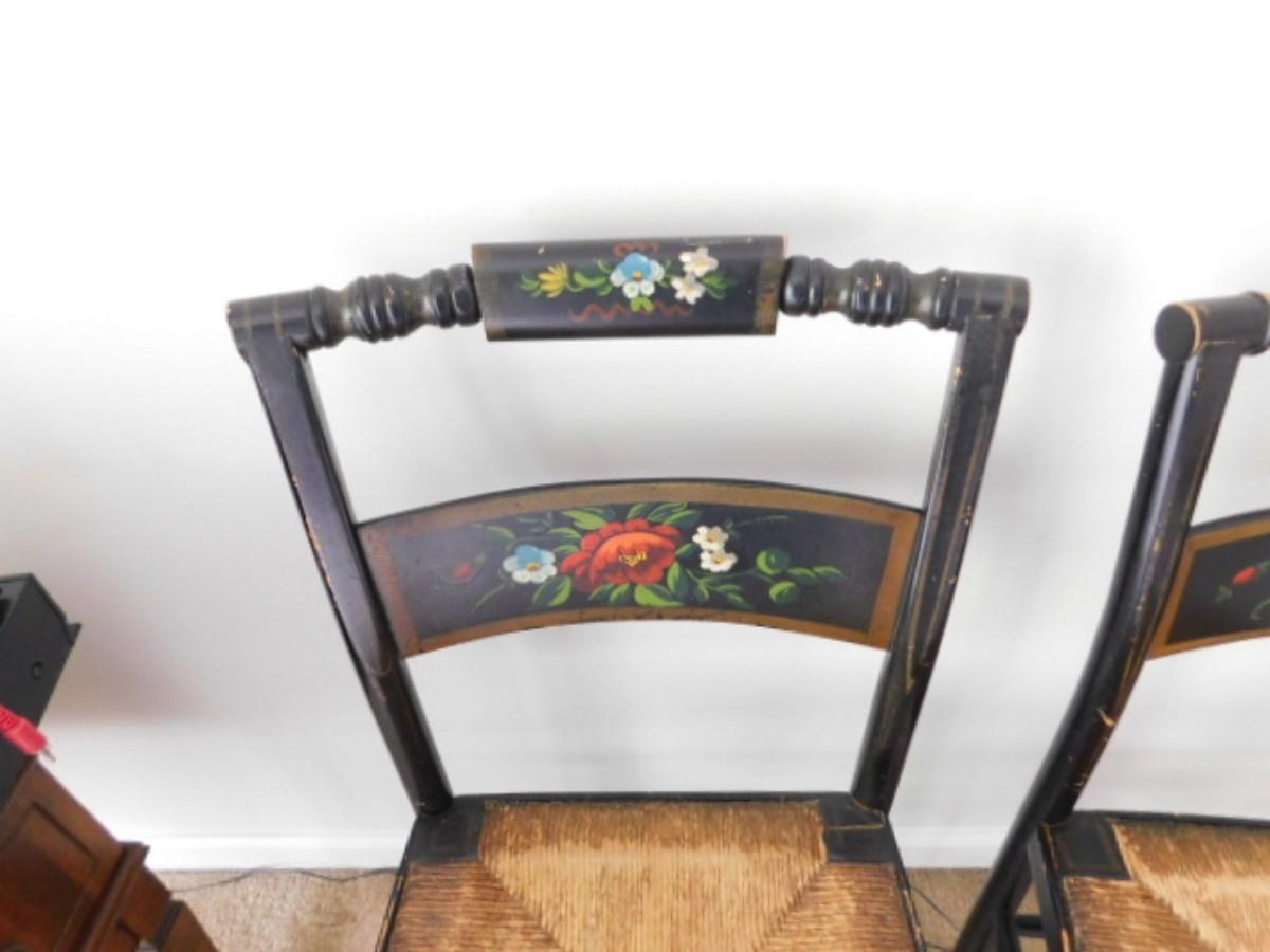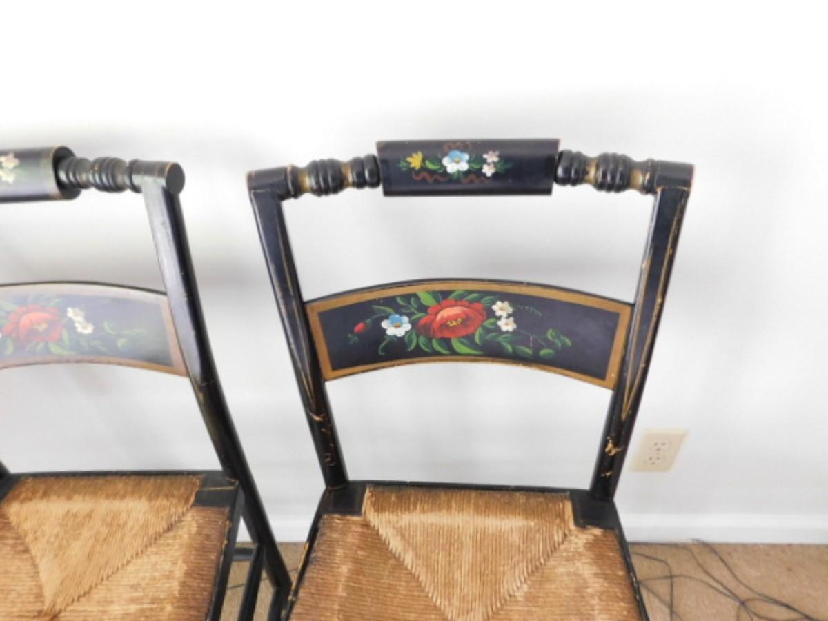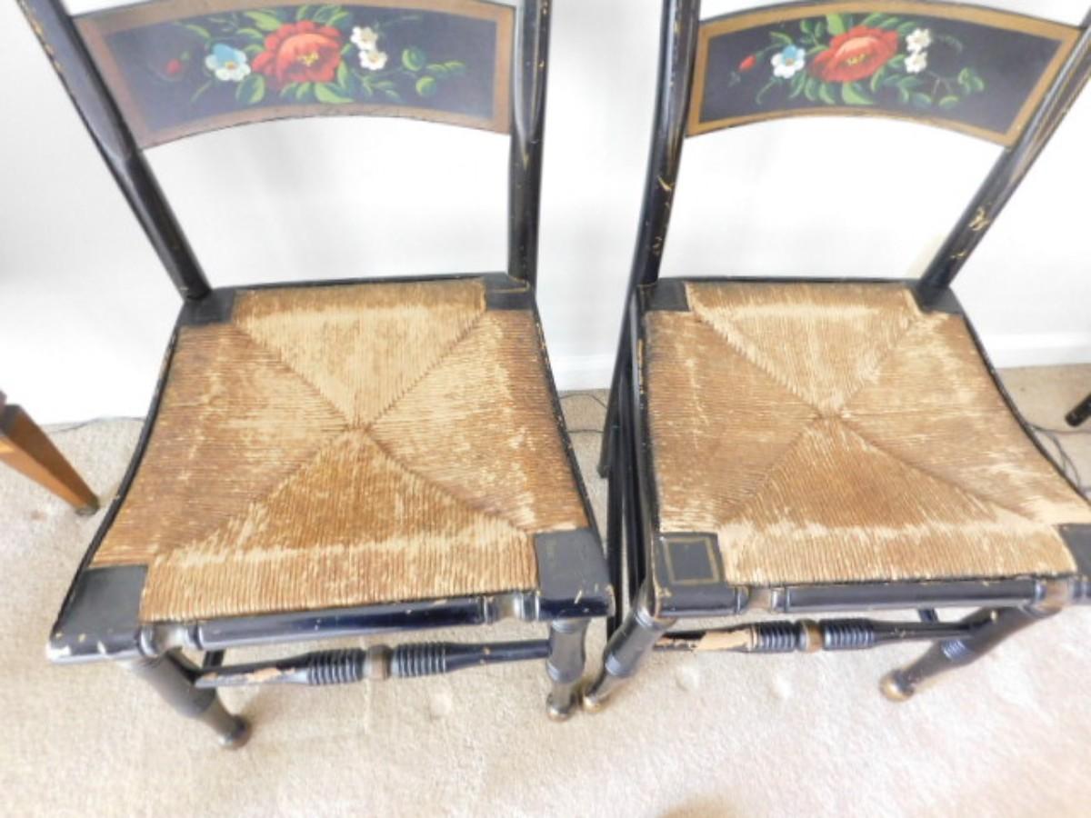 Vintage Pillow Back Painted Hitchcock Design Chairs with Rush Seats Choice B