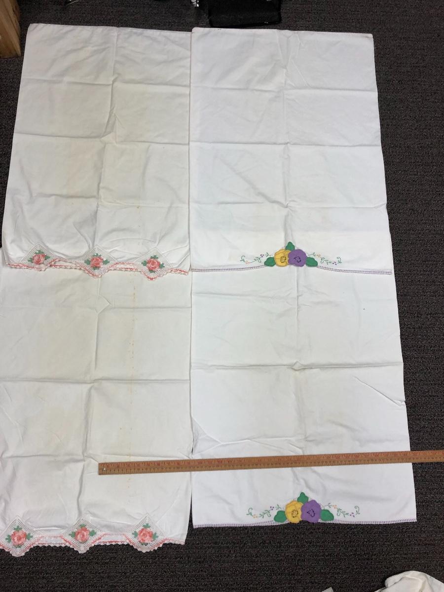 Vintage pillowcases with embroidered edges, standard size pillow. And used condition and there is some discoloration, see photos