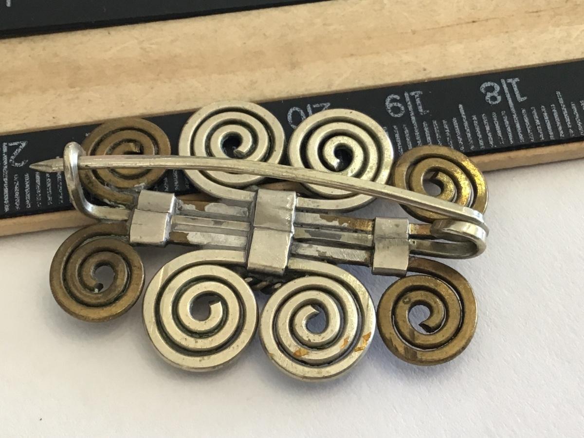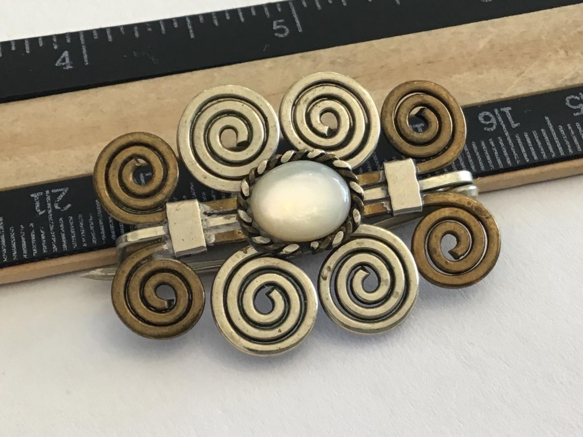 Vintage Pin Brass silver stone