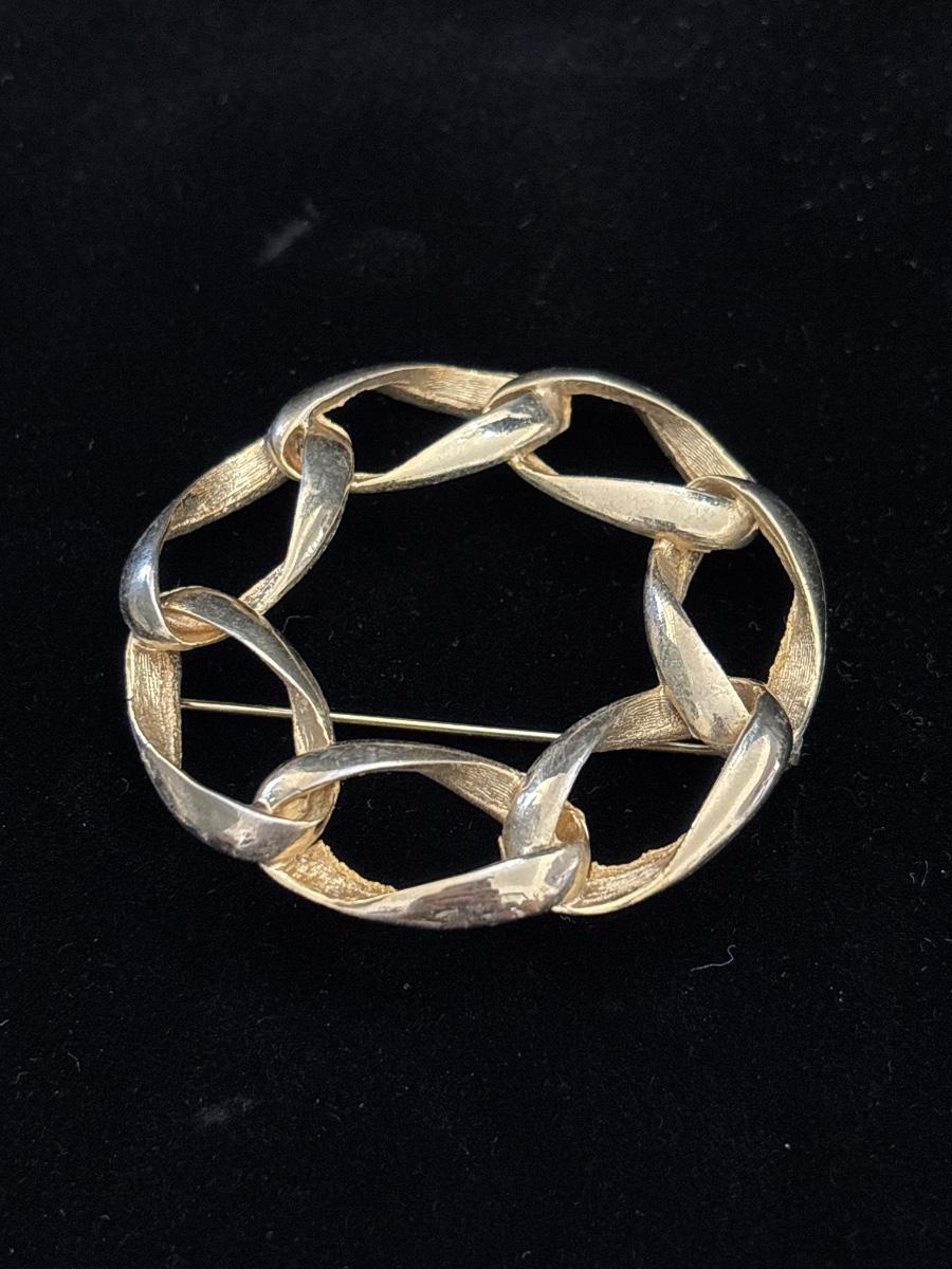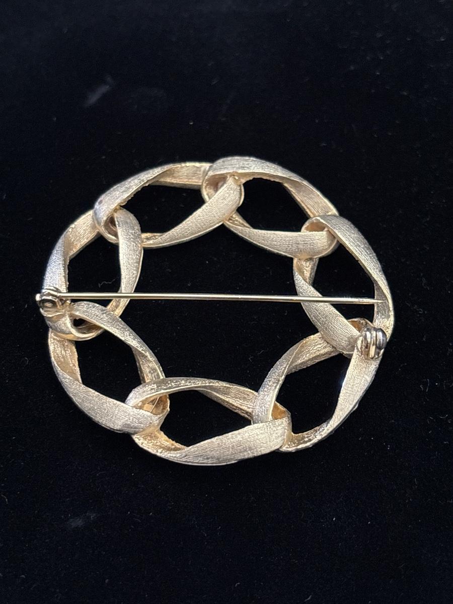 Vintage Pin Brooch Gold Toned Circle Chain Link Look Design