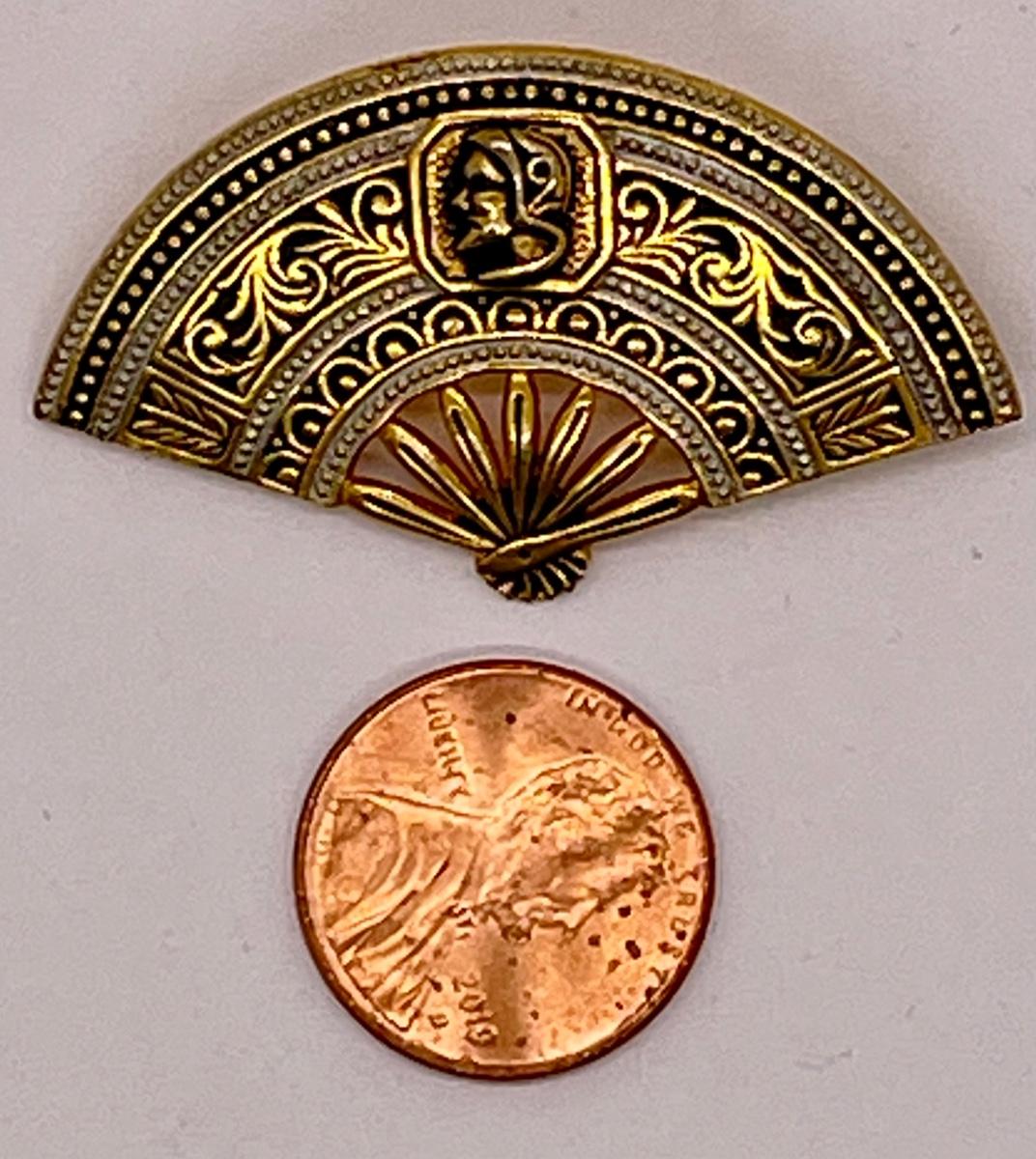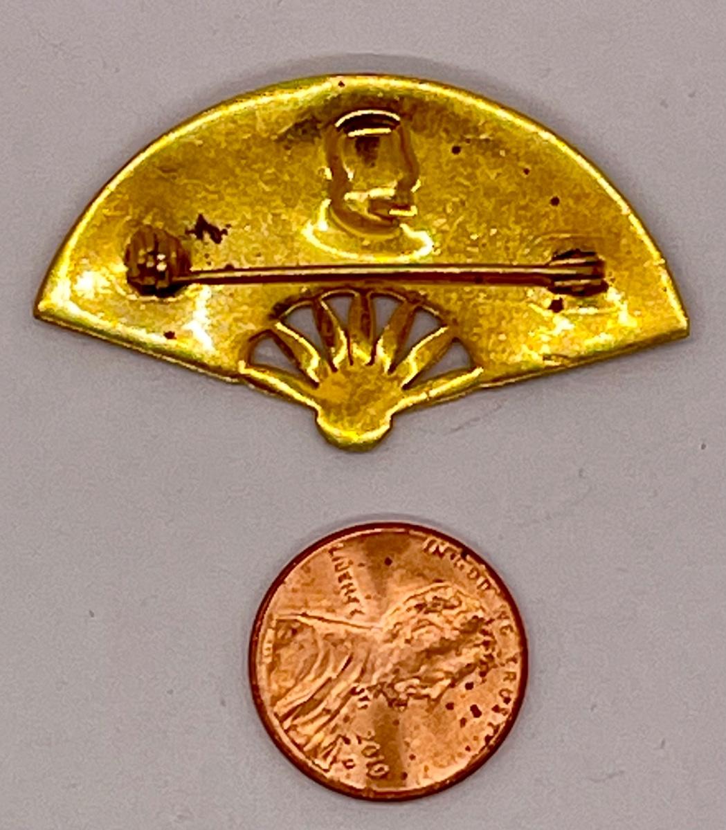 Vintage Pin Brooch of Brass Hand Held Fan with face