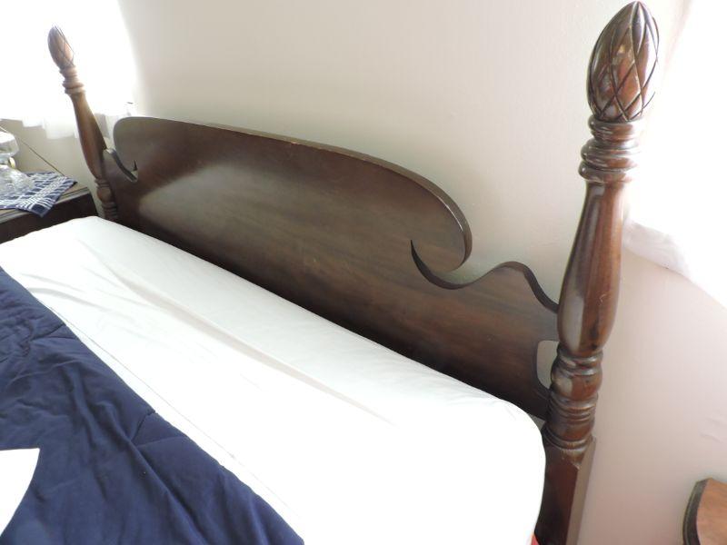 Vintage pineapple post bed frame, excellent condition. Bedding for sale in another lot. **Please read Terms and Conditions before placing a bid. Pick up is Sunday, September 15, 2019 from 11am to 4pm and Tuesday, September 17 from 4pm-7pm in Sicklerville. All sales are final. All sales are as is, where is. Please review all photos. Any props included in photos are not included in listing. All measurements are approximate.