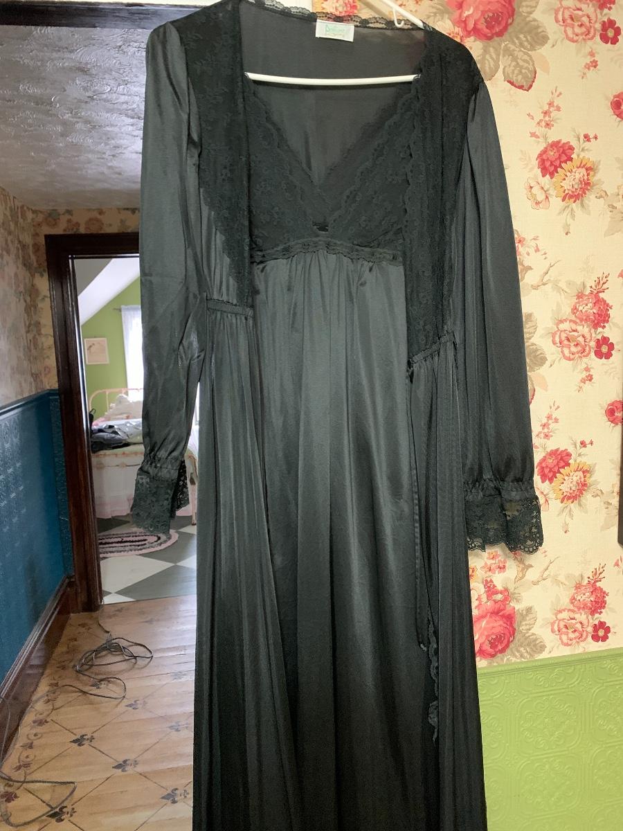 100% Nylon gown ties in back robe has ties in front.. nice condition worn very little