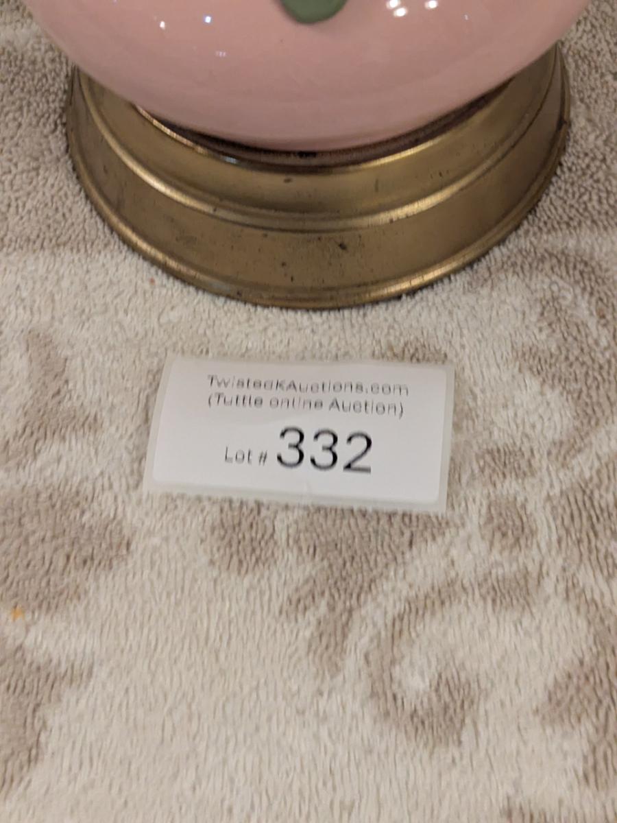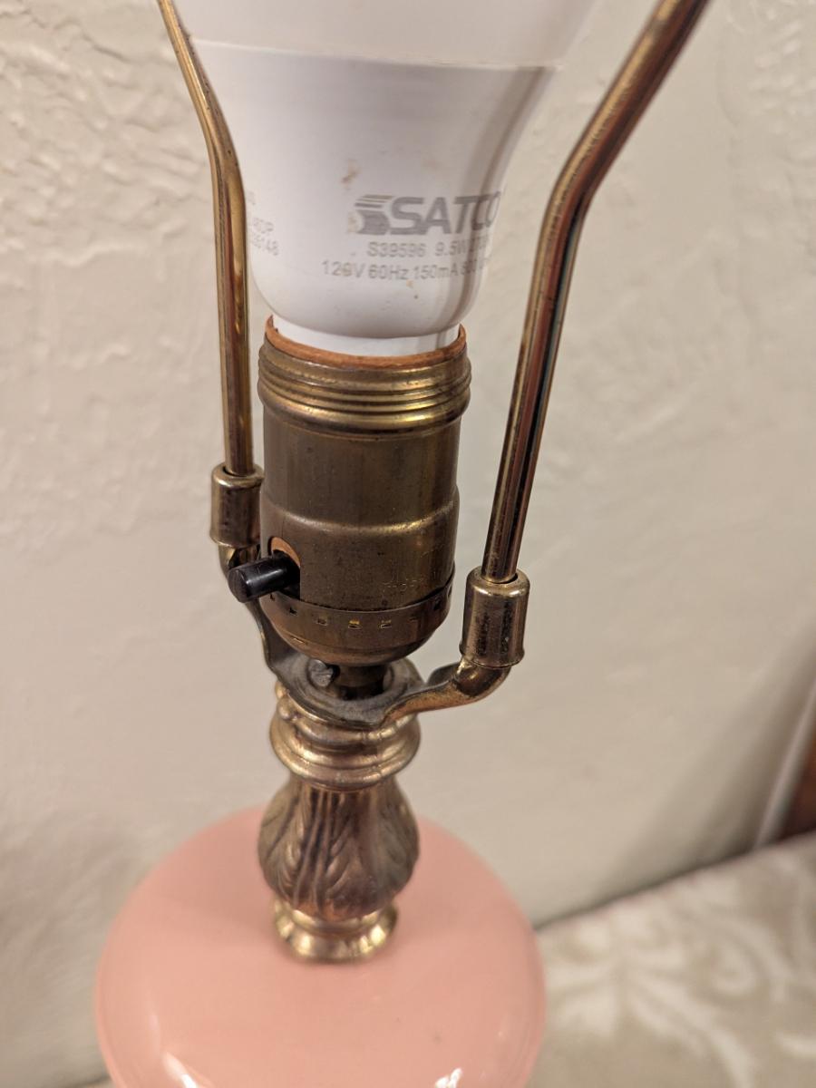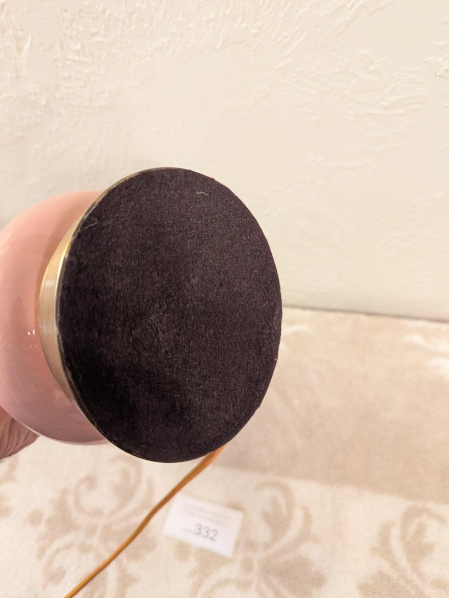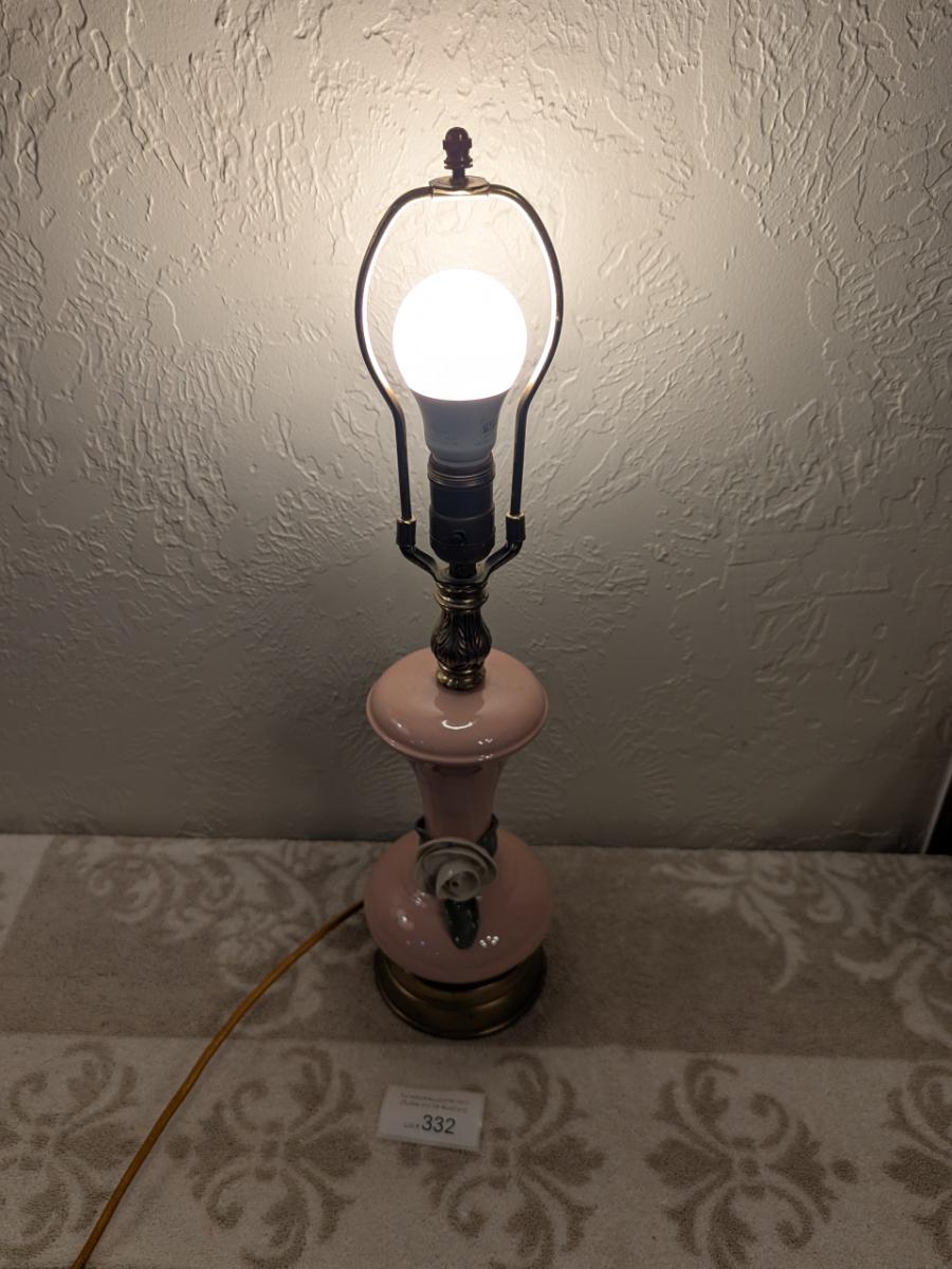 Vintage Pink Alacite glass lamp with flower on it. Brand unknown see all photos. Flower has a Capodimonte like style to it.