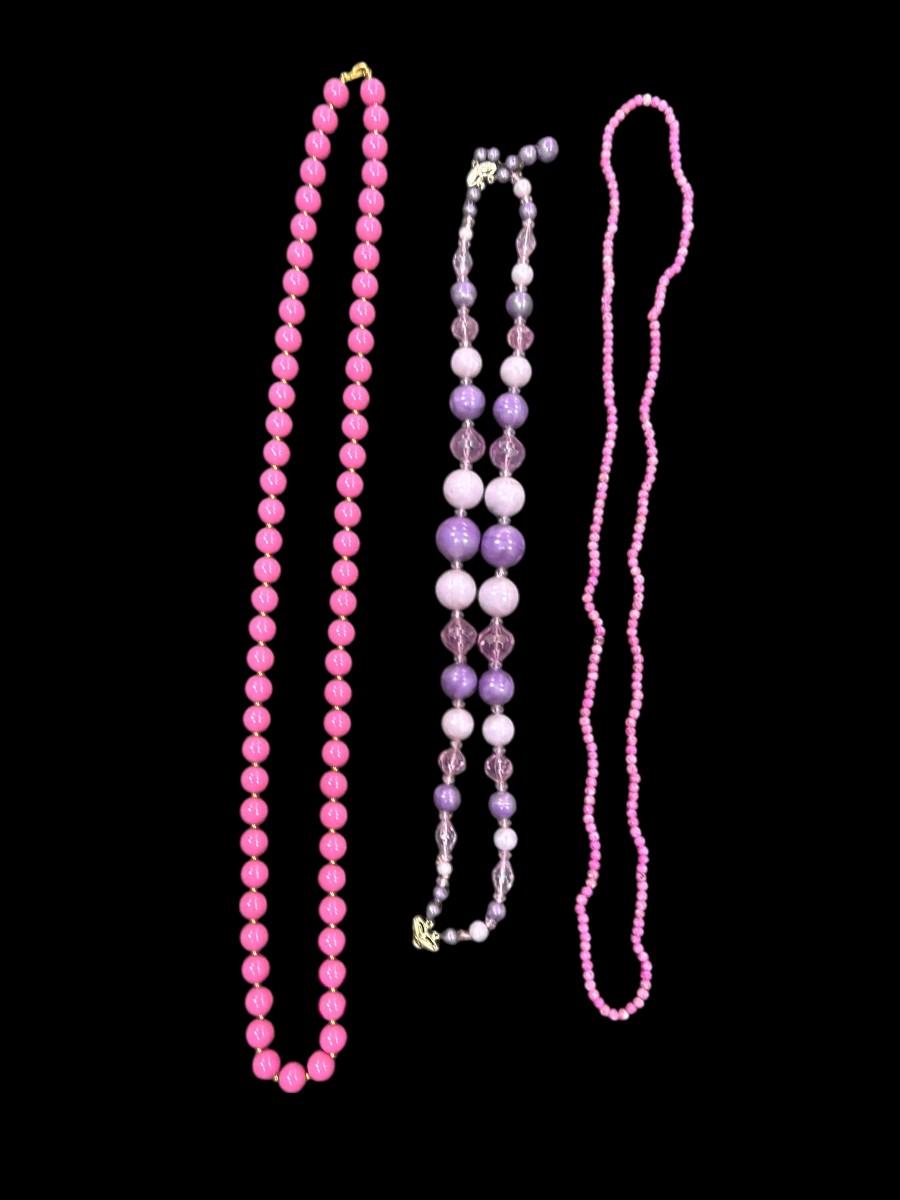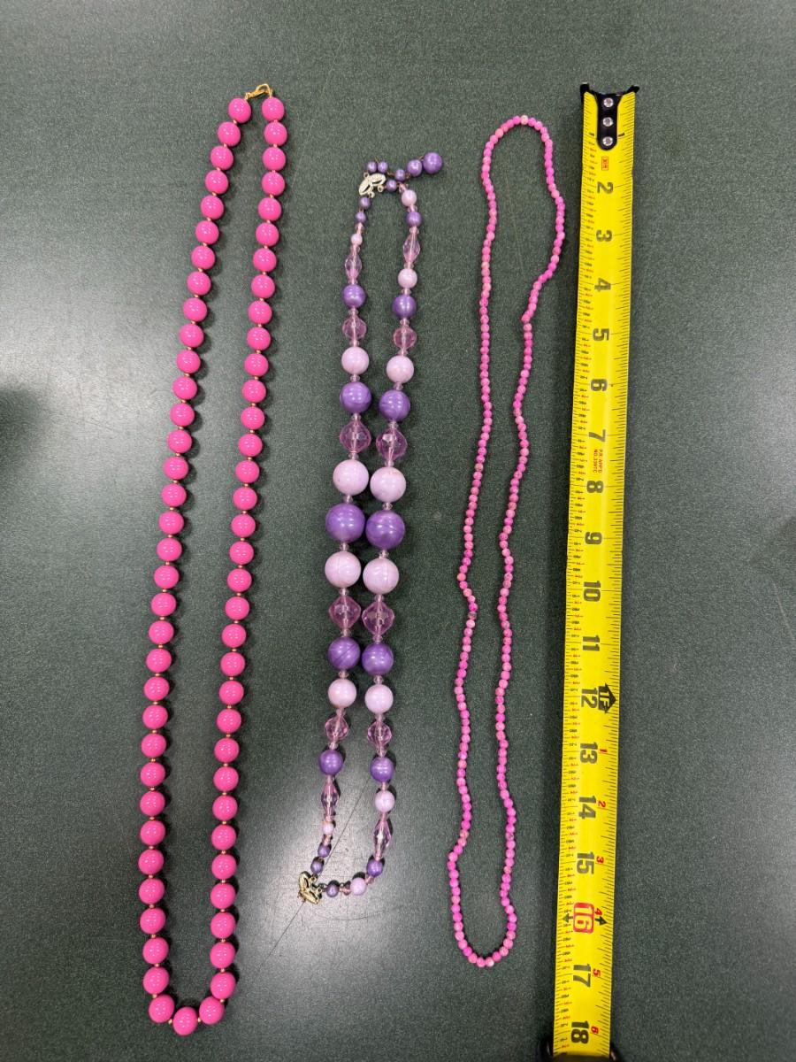 Vintage Pink and Purple Resin Beaded Necklaces Set of 3