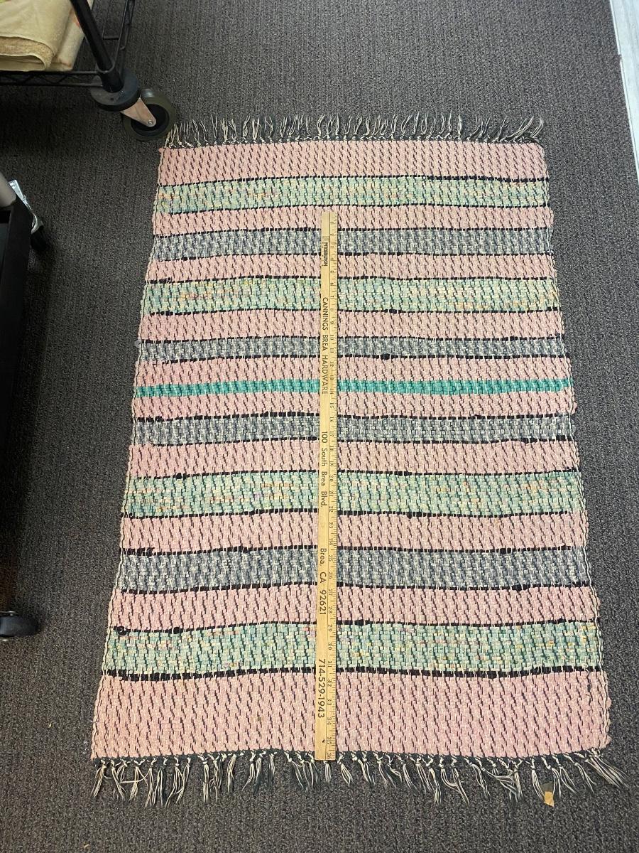 Vintage Pink and Teal Green Fringed Edge Throw Rug Mat. In good used condition.