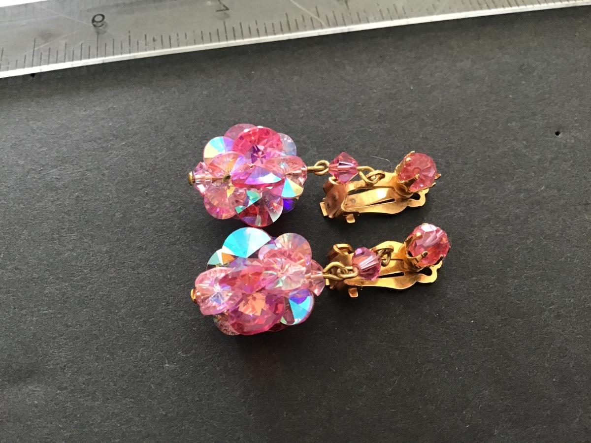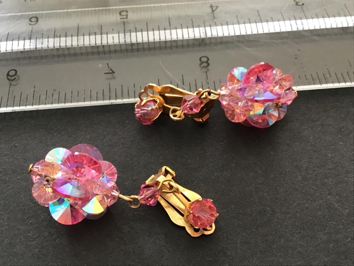 Vintage Pink Crystal Dangle Drop Earrings Vintage