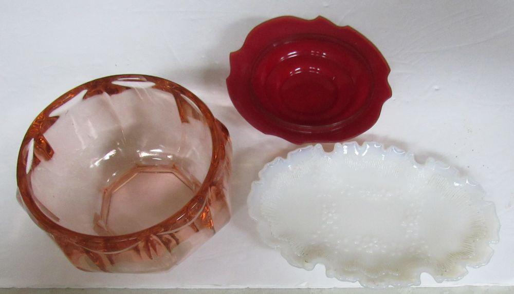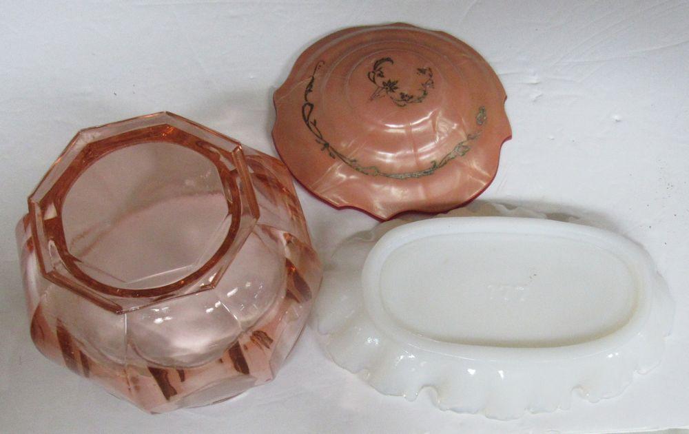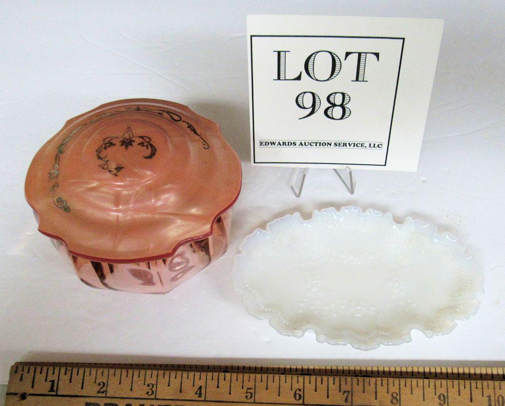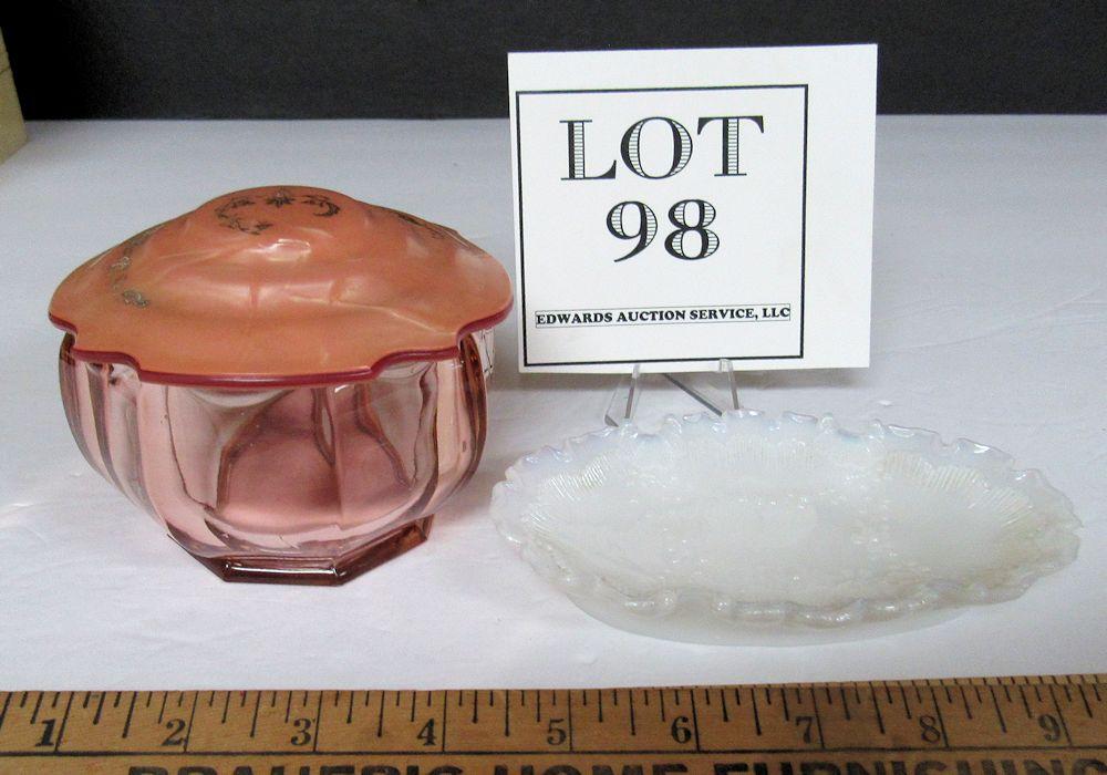 Vintage Pink Depression Dresser Box and Milk Glass Small Tray