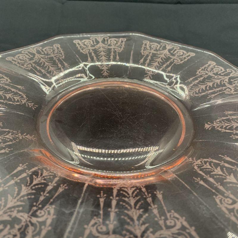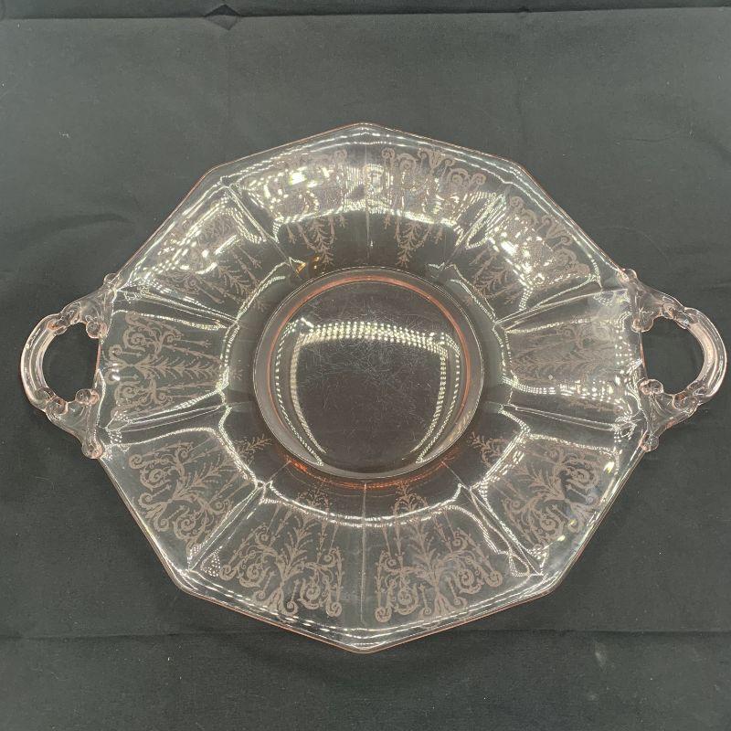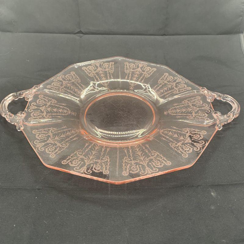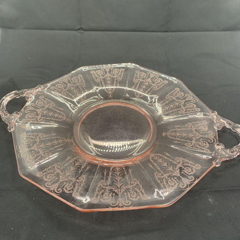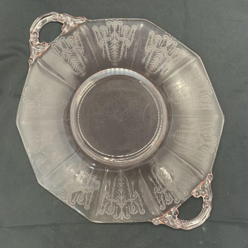 Octagonal Shaped Cake Plate with Scrolled Handles with an Embossed Grecian/Peacocks/Vase Pattern