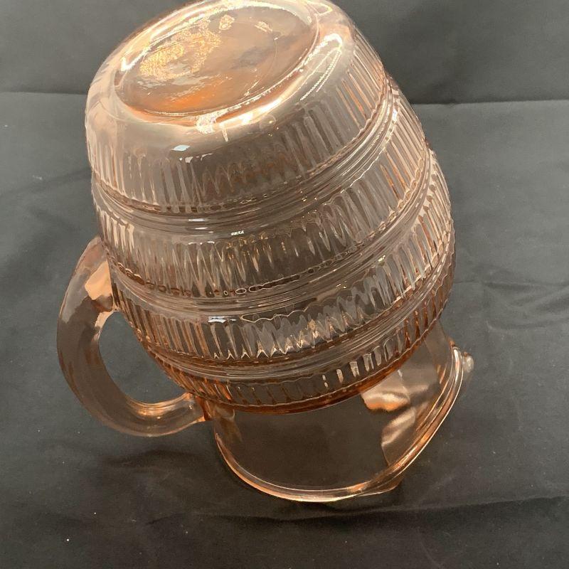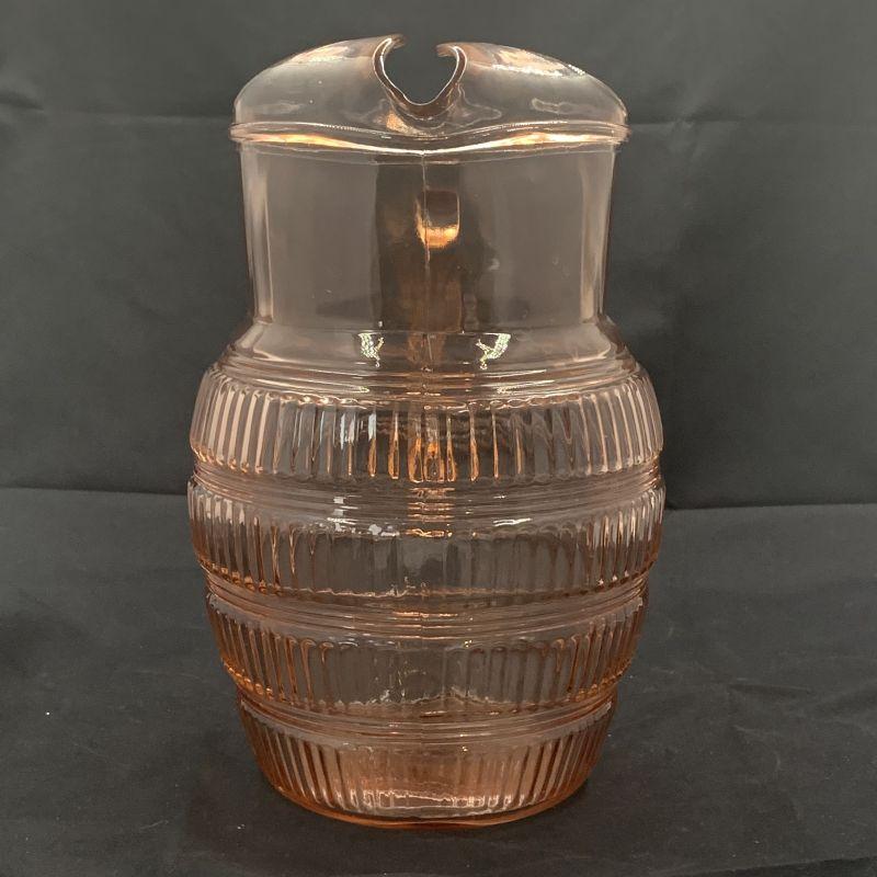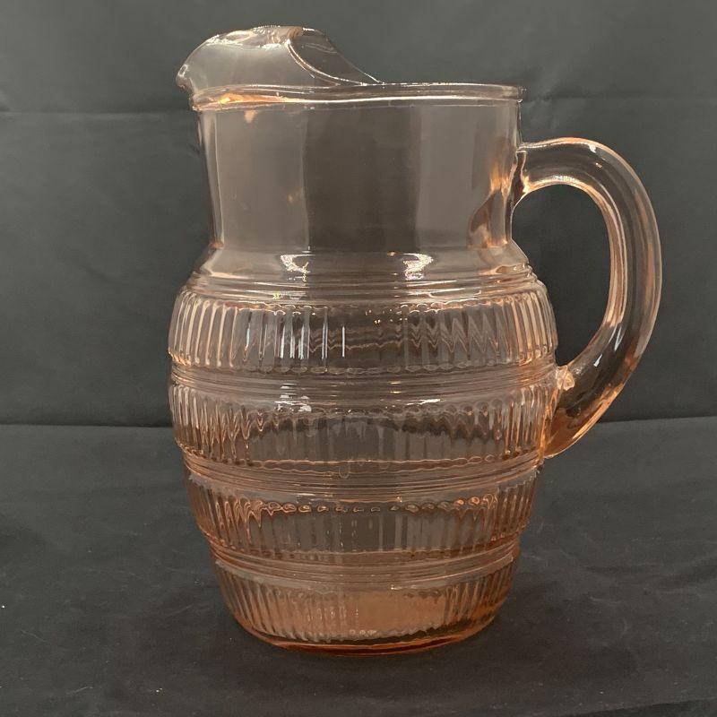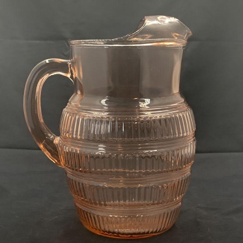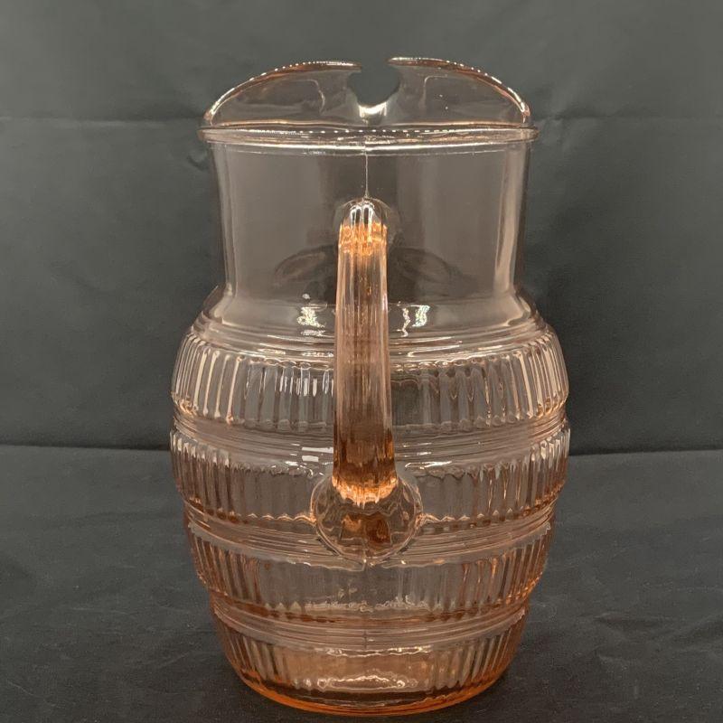 Pink Depression Glass Pitcher; Stripe-Ribbed and Ice-Lipped