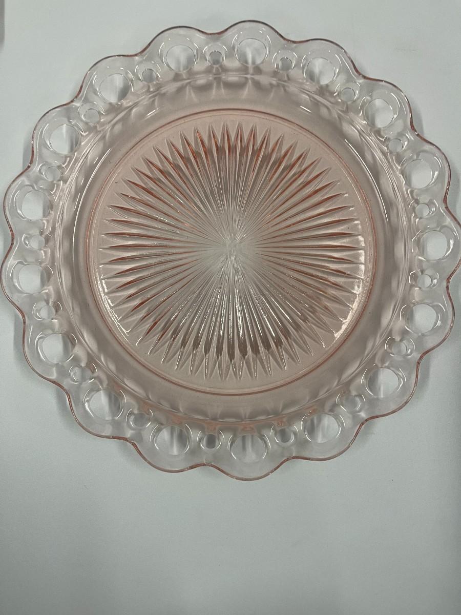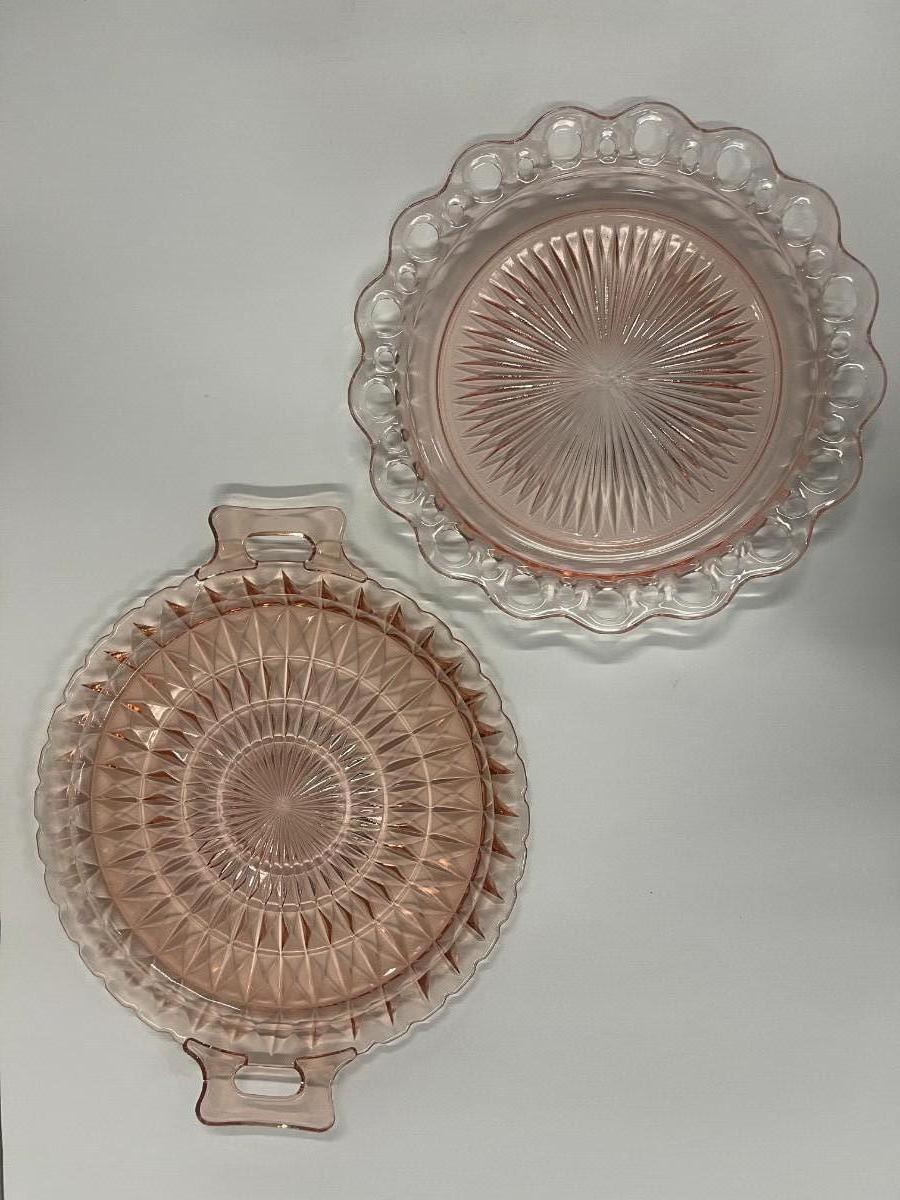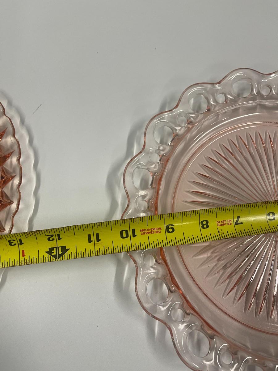 Pair of vintage pink depression glass platters, 12 1/2" & 10"