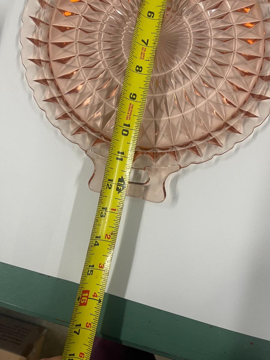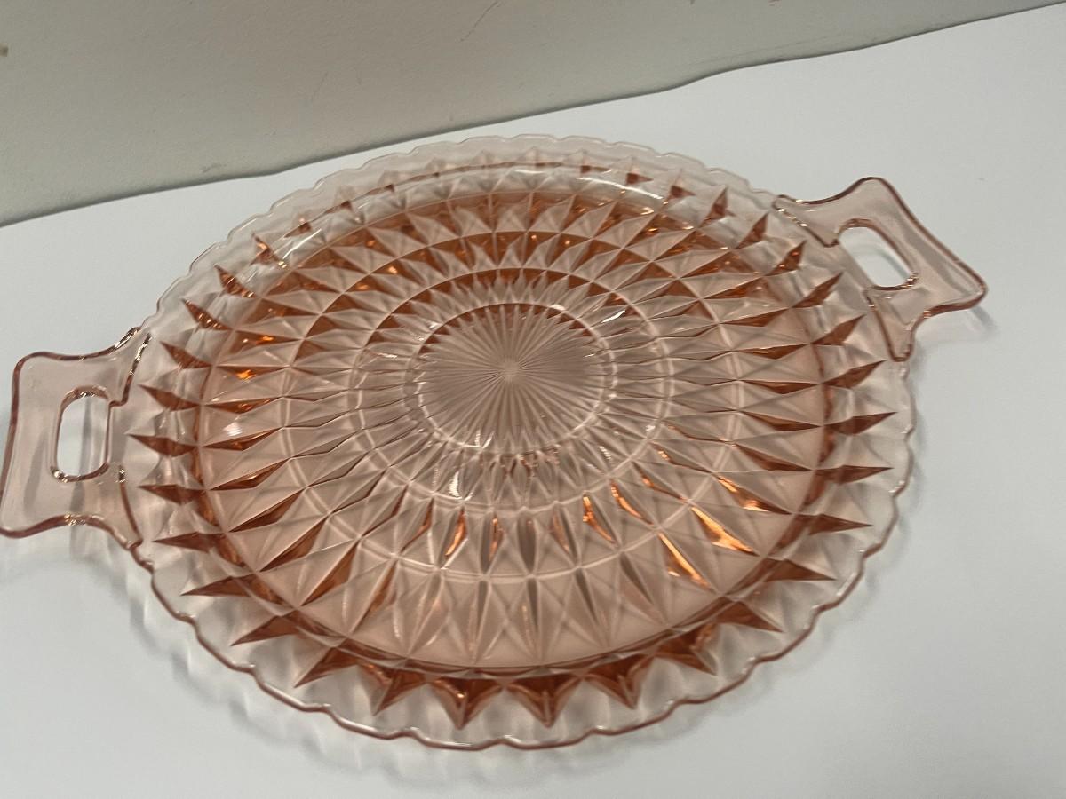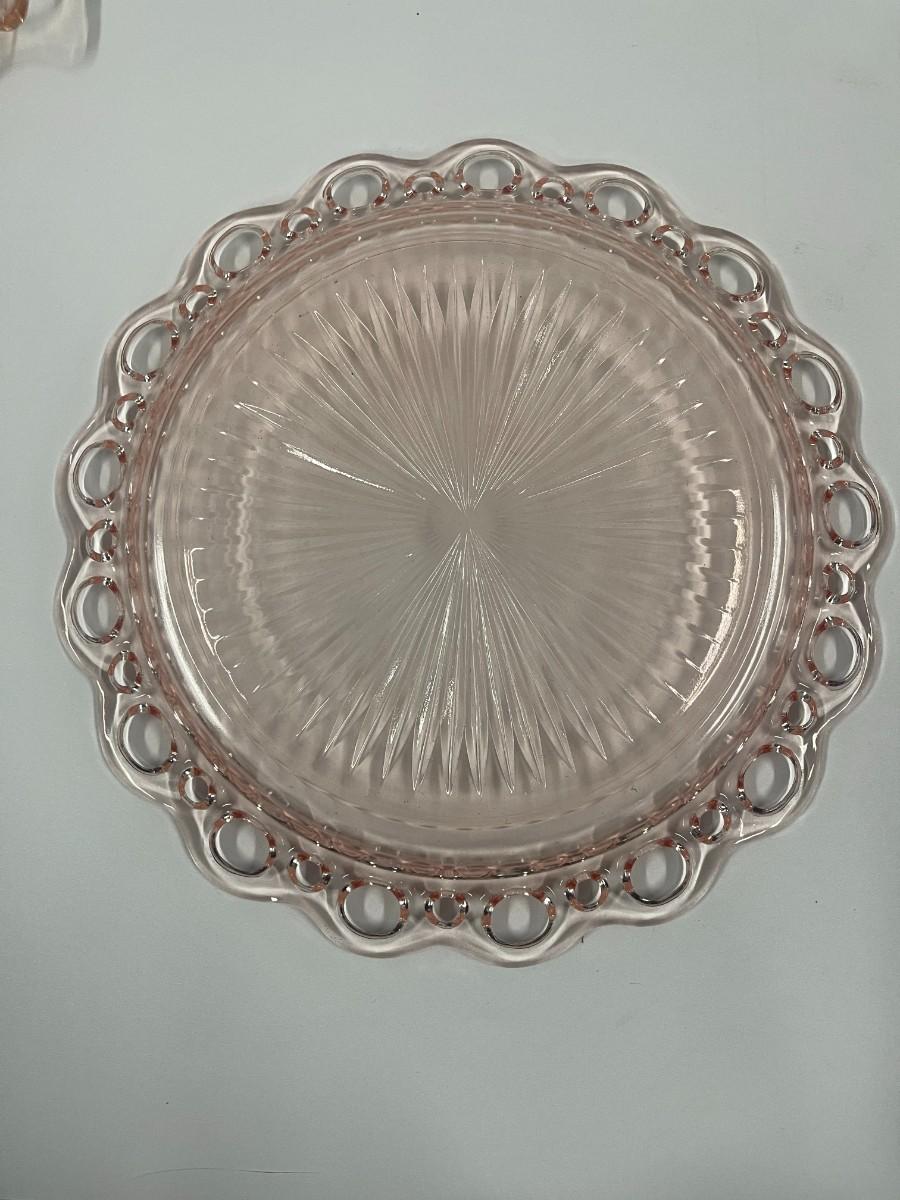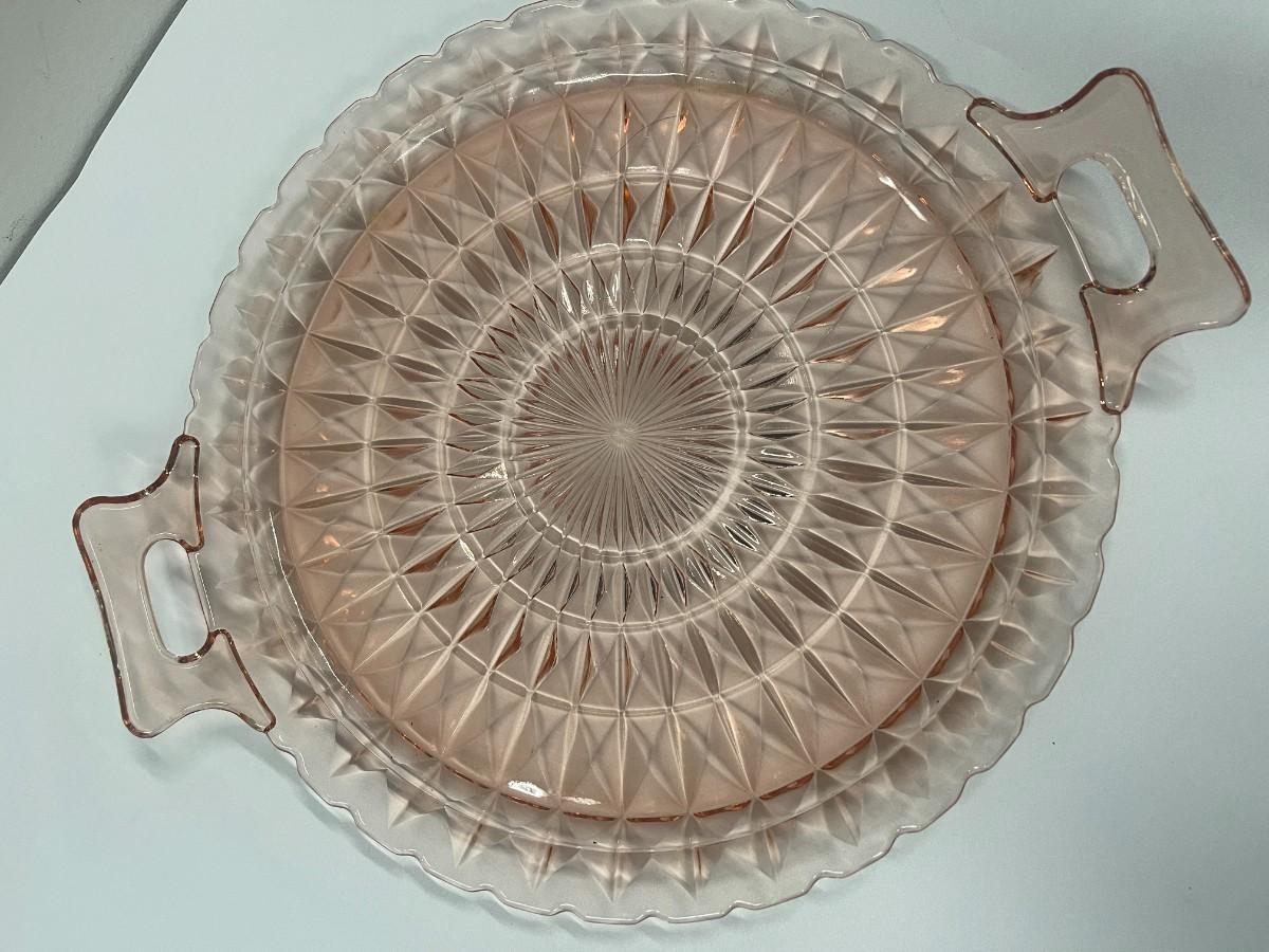 Pair of vintage pink depression glass platters, 12 1/2" & 10"