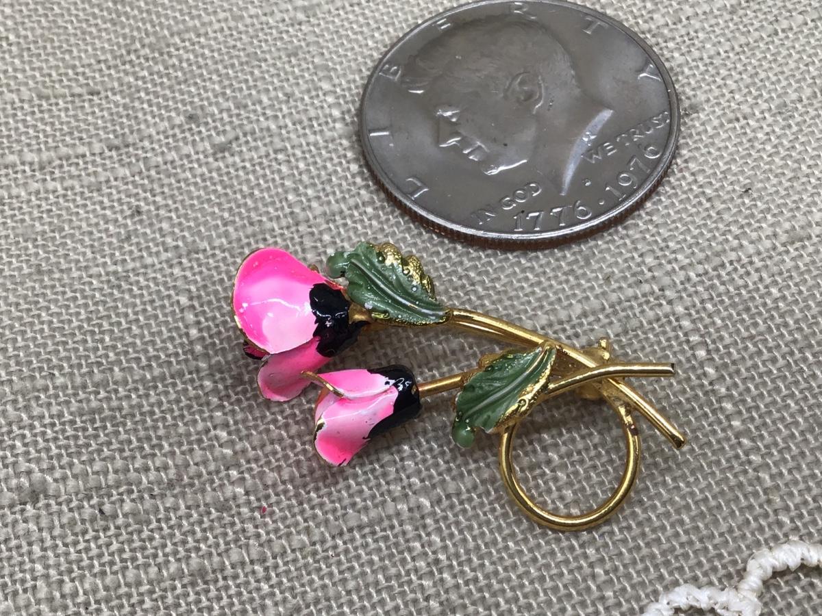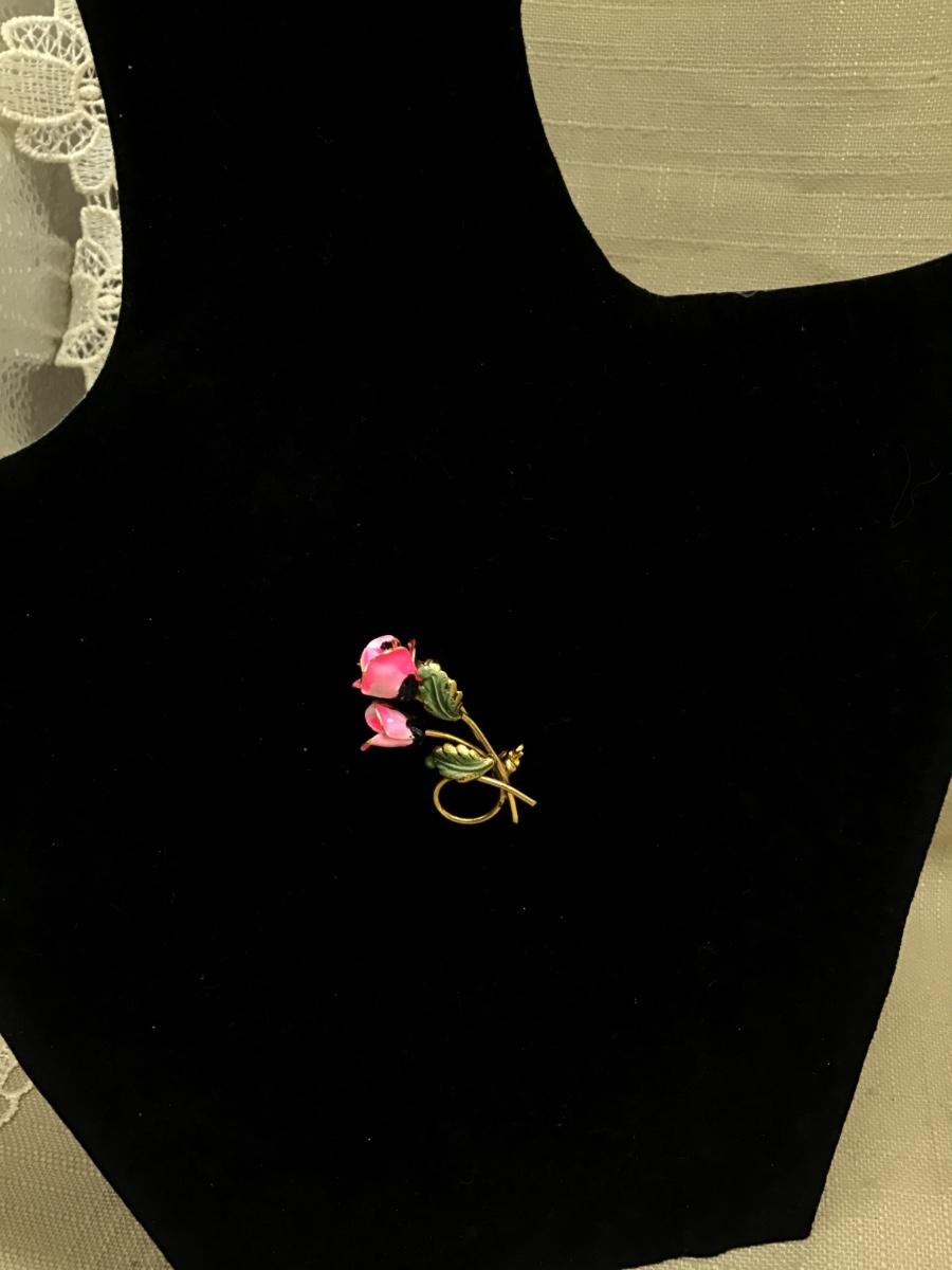 Vintage Pink Enamel Rose Flower Pin Brooch