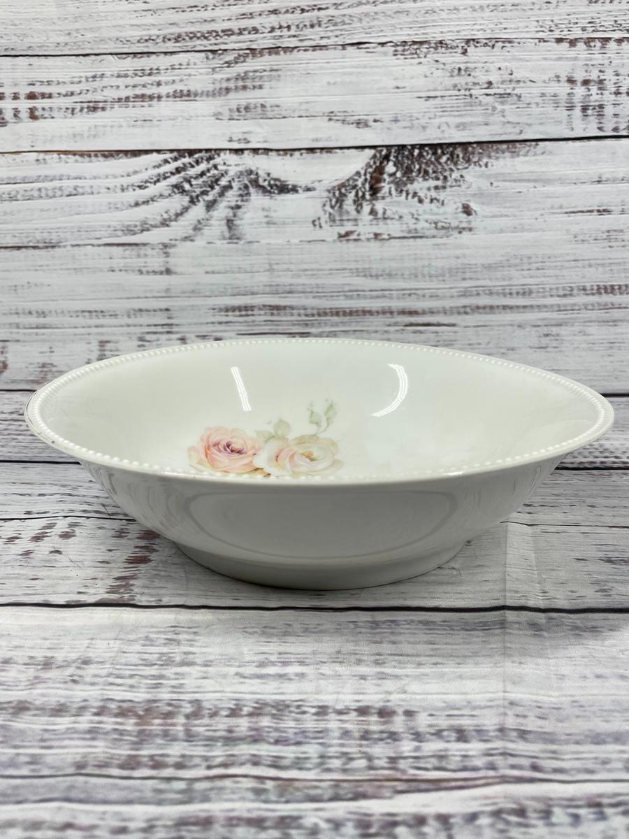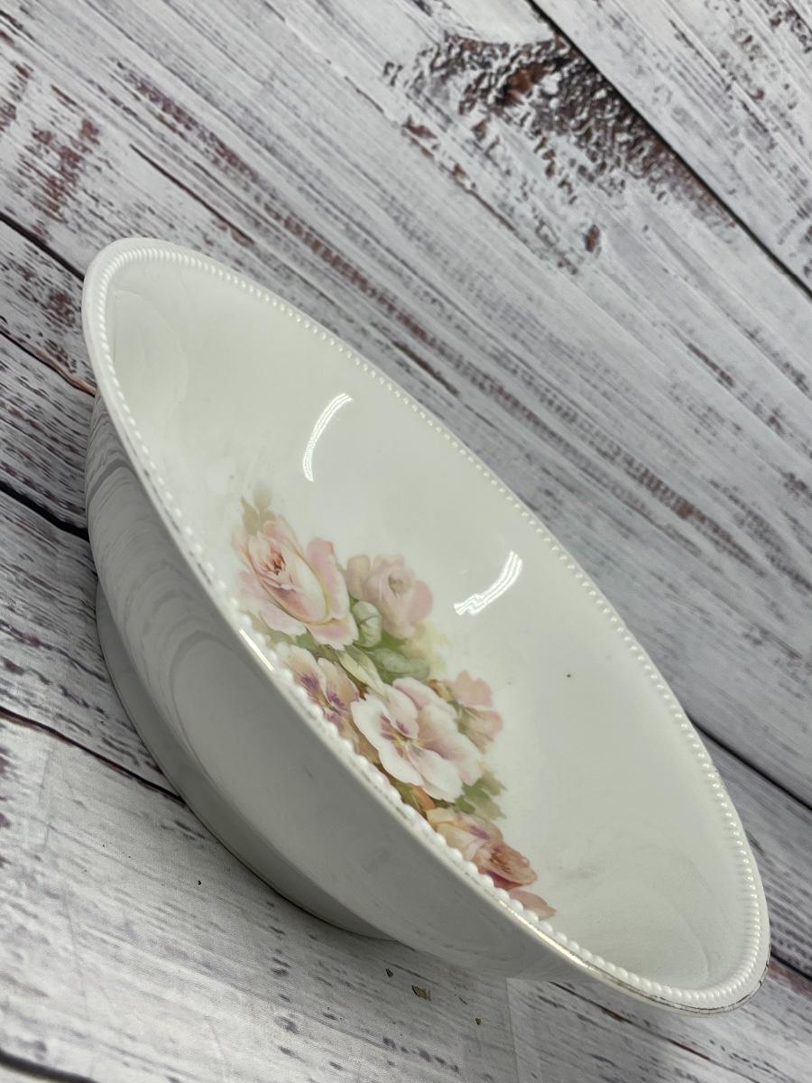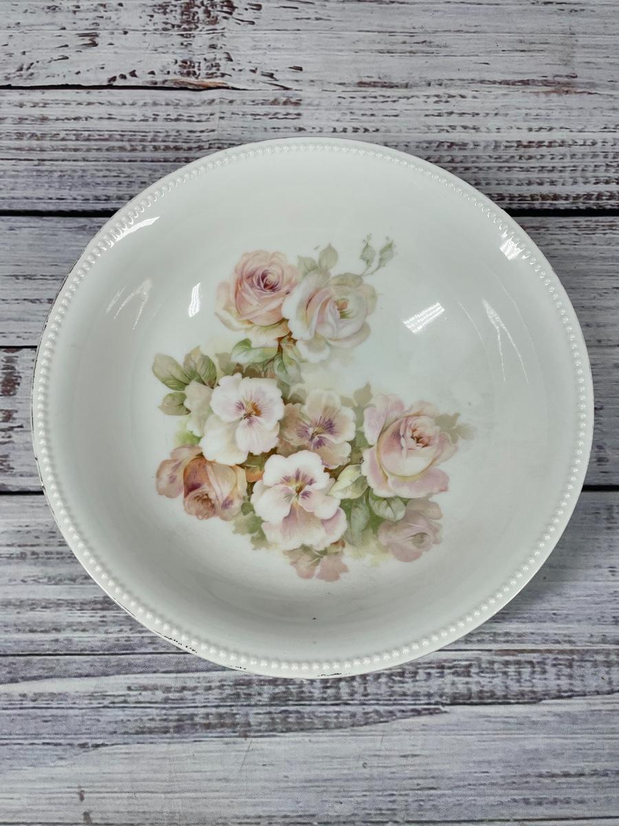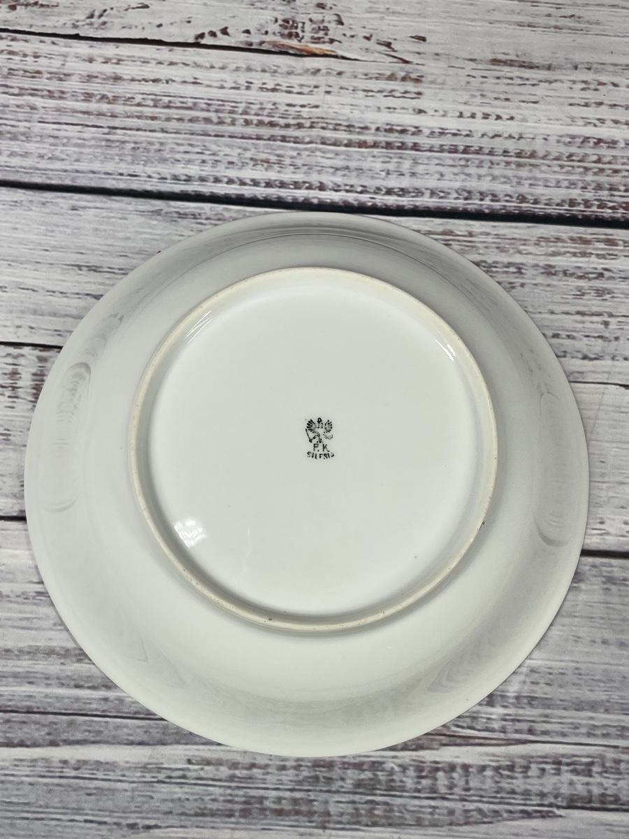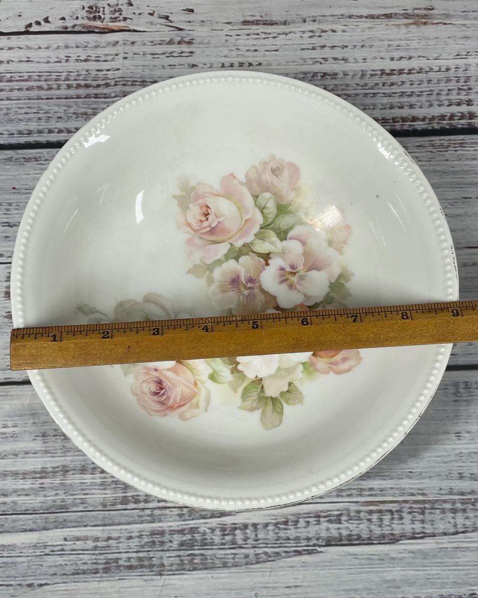 Bowl is in great condition. There is a couple spots that are discolored but they aren’t noticeable. Item is approximately 9” wide. Marked on the bottom.