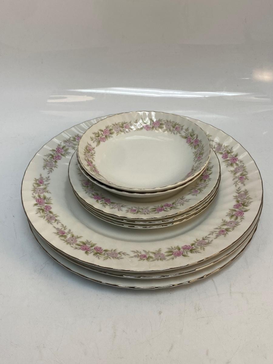 Vintage Pink Floral Teahouse Rose Dansico Collection Fine China Dishware Plates Fruit Bowls