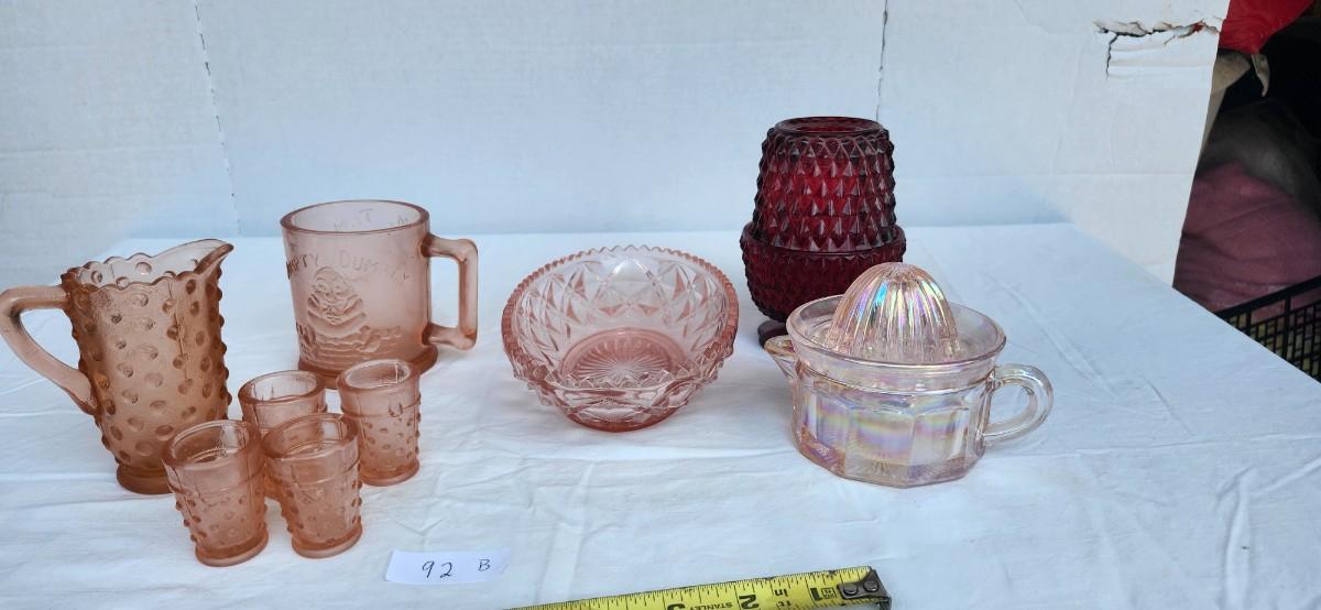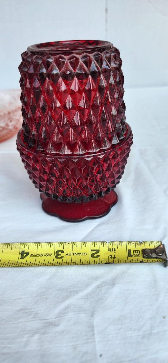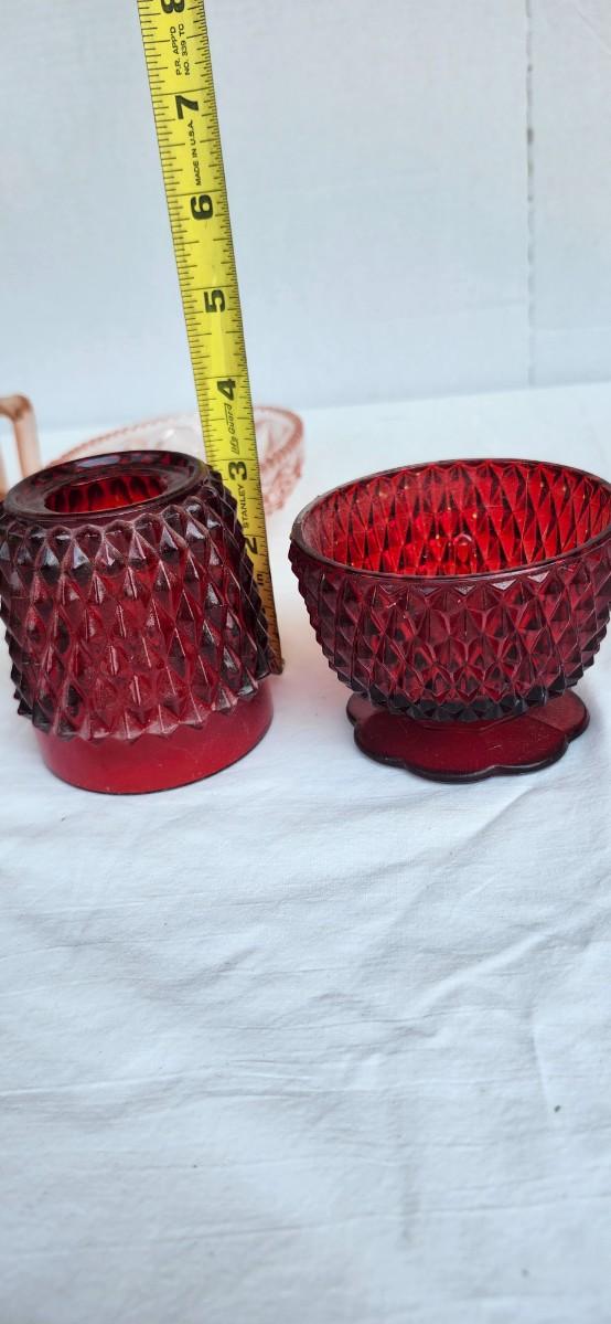 Vintage Pink/red Glass lot with Vintage Indiana Glass Diamond Point Fairy Lamp Ruby Red